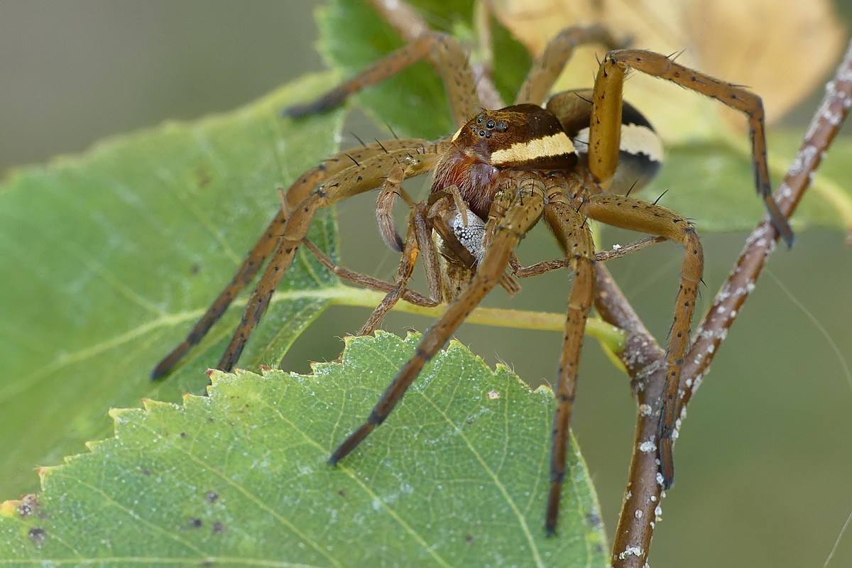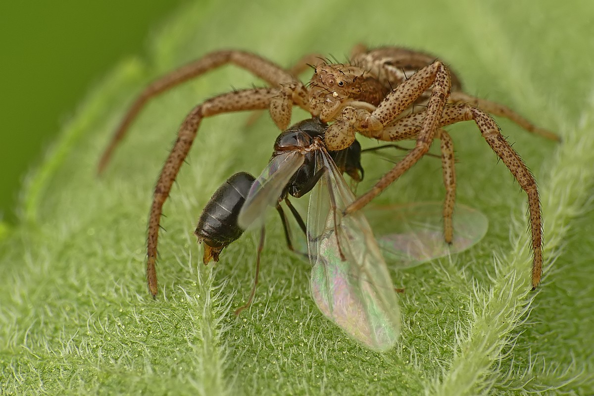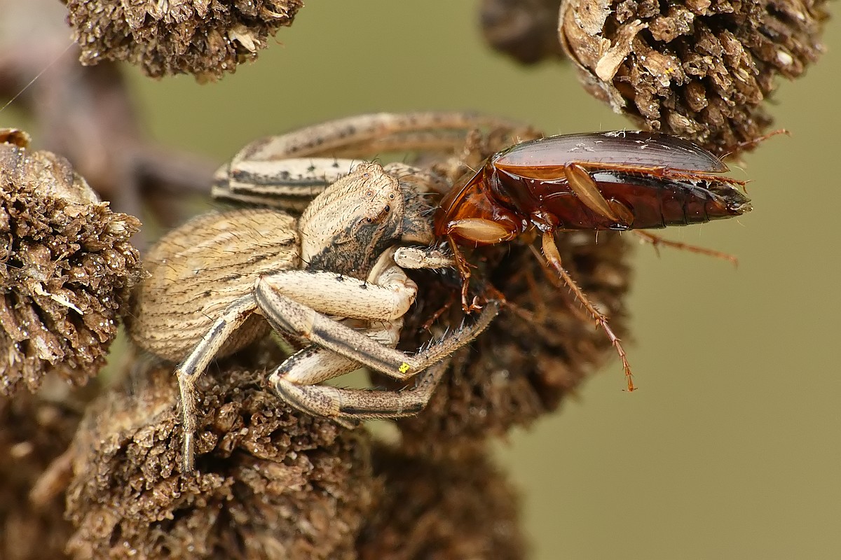Kolejny bagnik przybrzeżny - tym razem pałaszuje schwytanego pająka - jak widać drapieżca też niekiedy staje się ofiarą: