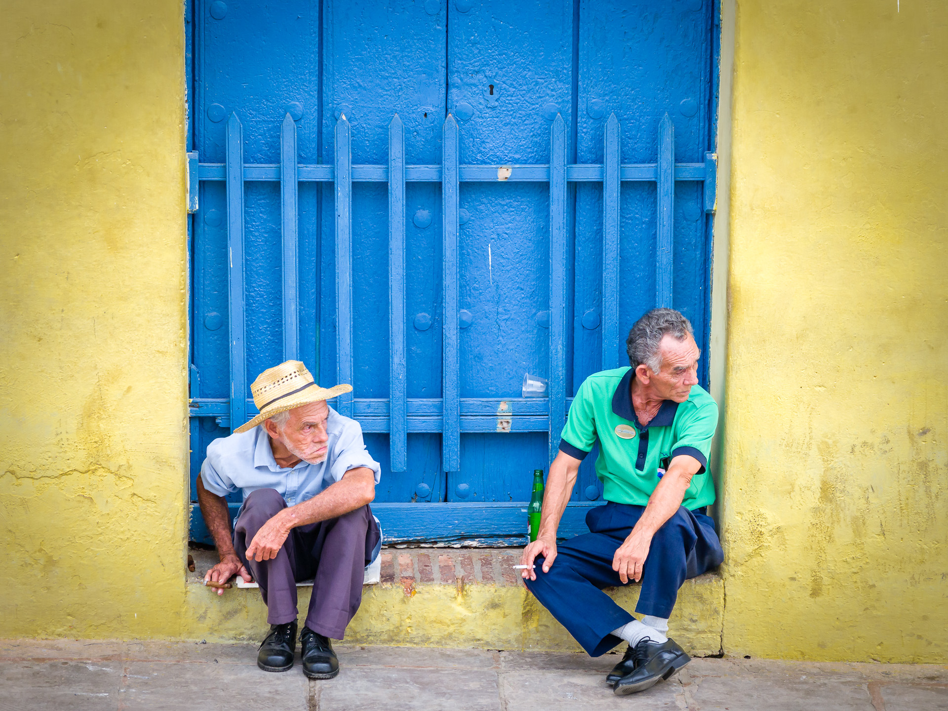 112a. Starszy człowiek uważnie obserwujący turystów na ulicy w Trinidadzie (Kuba). Tak szybko kręcił głową raz w jedną raz w drugą stronę, że można było odnieść wrażenie, że wraz z kolegą obserwuje mecz tenisa ziemnego ;)