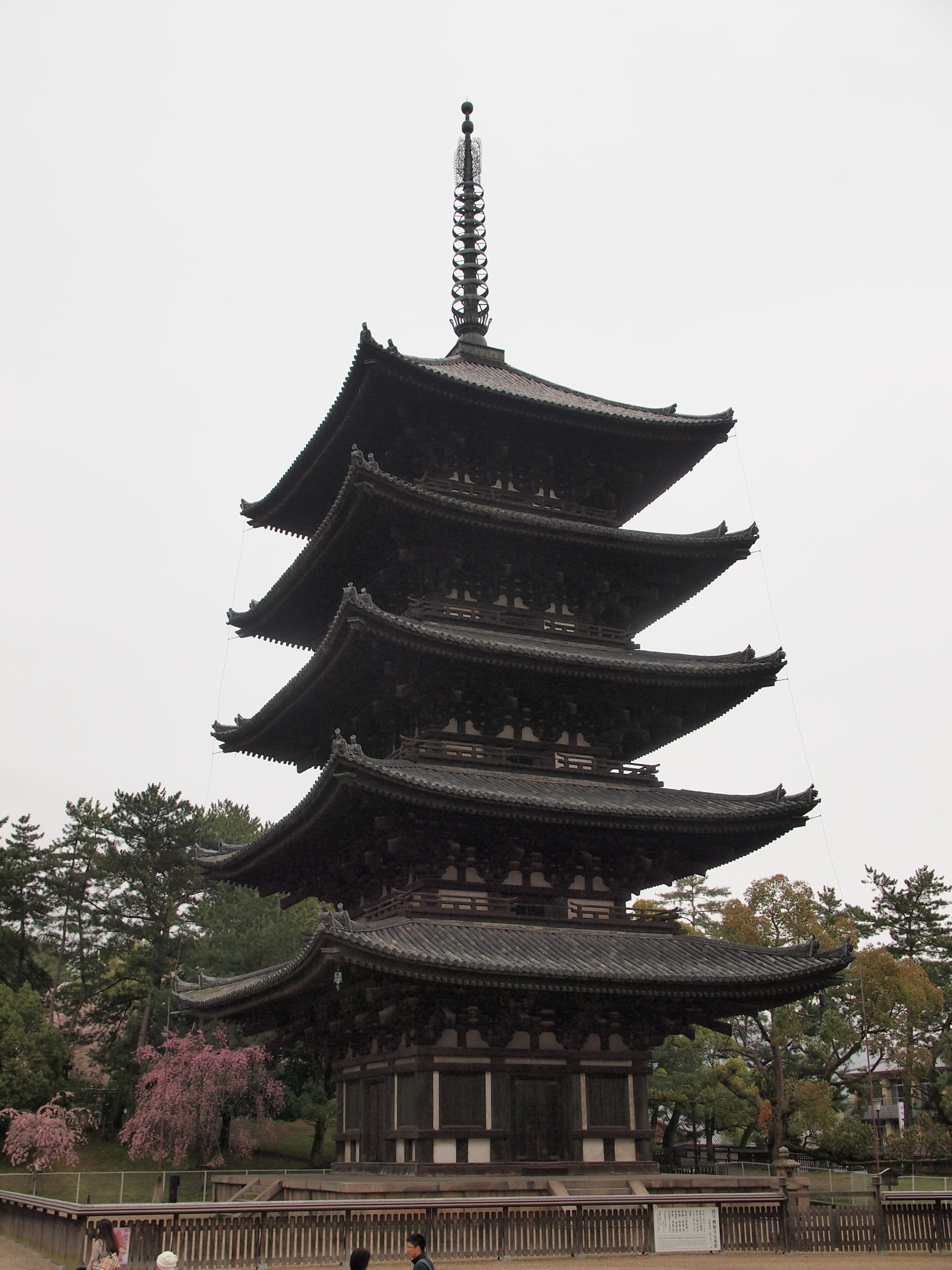 Z racji ograniczeń czasowy wizytę w Nara ograniczyliśmy do Kofuku-ji (興福寺) buddyjskiej świątyni, jednej z najstarszych w Japonii (wybudowana w 669 roku n.e). Niestety wszystkie obiekty znajdujące się w tym miejscu to rekonstrukcje, co prawda z XV wieku ale jednak rekonstrukcje. Dzisiaj dwie fotki pięciopiętrowej pagody, drugiej co do wysokości w Japonii.