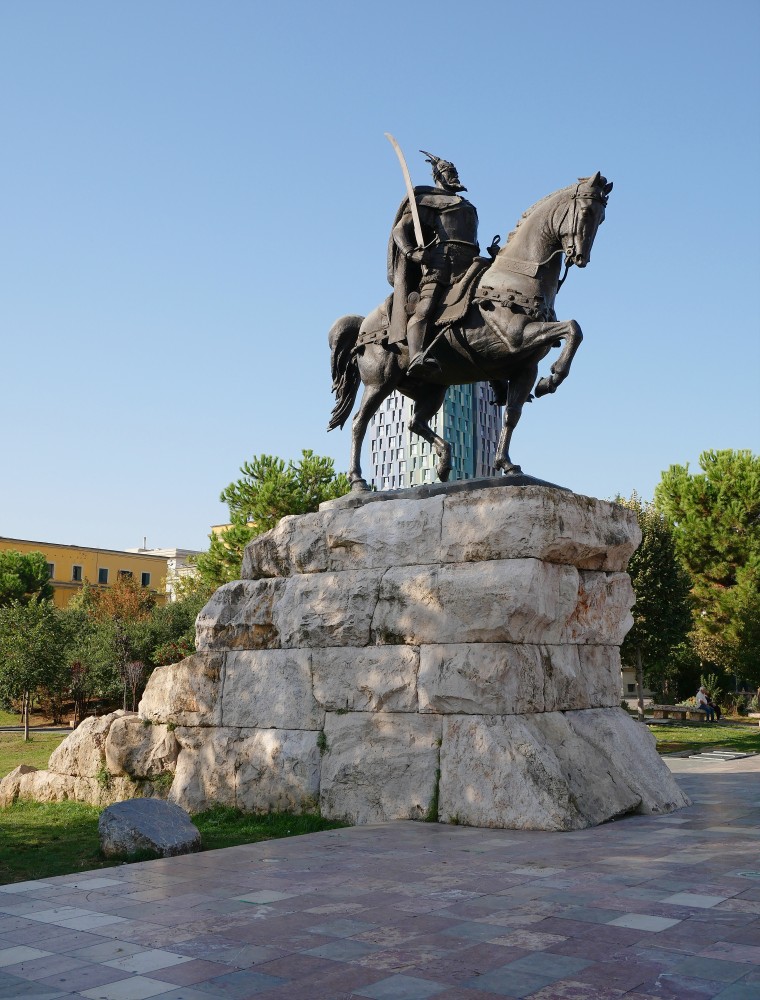 Jerzy Kastriota na placu Skanderbega w Tiranie.