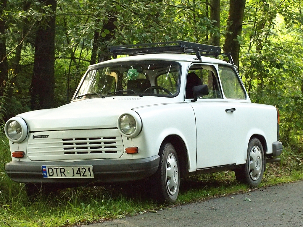 Ależ, zadbany, lśniąca sierść, nawet medalik na szyi ma. Od razu widać że właściciel tylko poszedł na stronę. A że autko dobrze wychowane, to nawet go nie musiał smyczą do pnia przywiązywać i grzecznie sobie czeka.