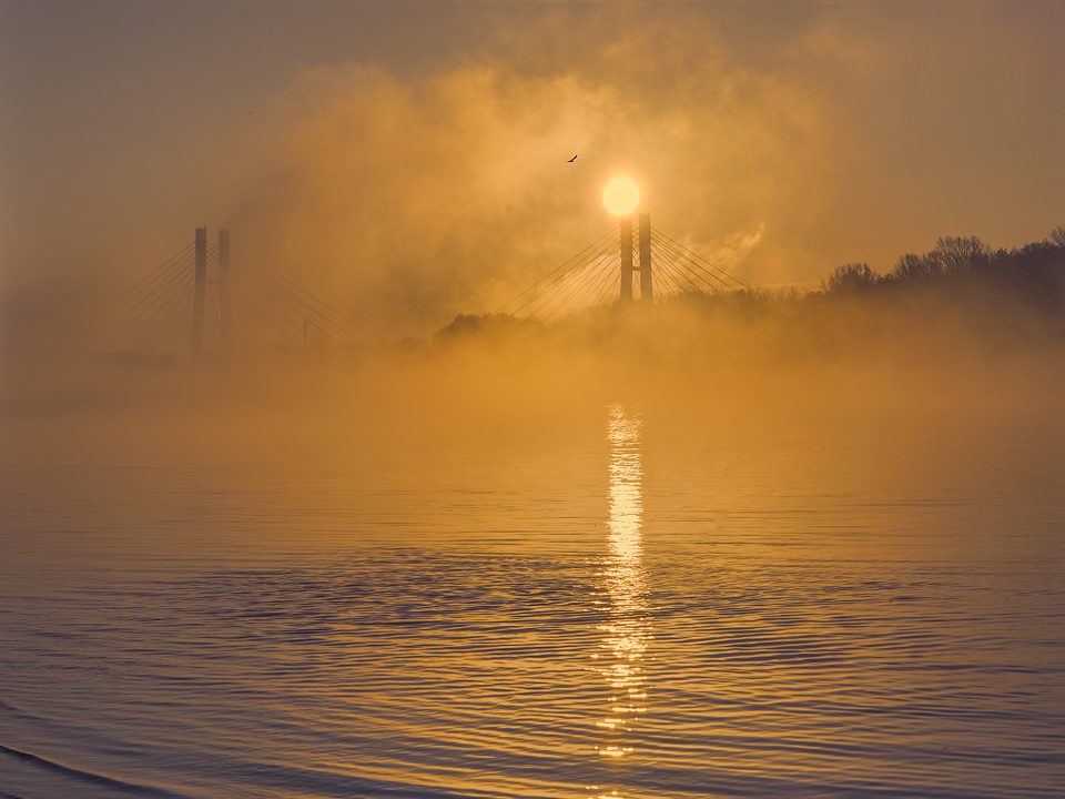 Raz odcinając od dołu 1/3 eksponuje się zachód słońca z pięknie oświetlonymi chmurami.