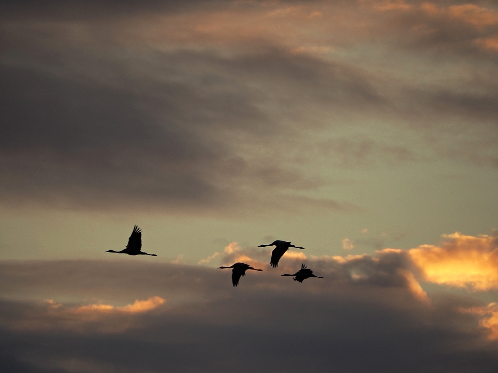 Jeszcze raz żurawie o zachodzie słońca. Jest ich już coraz więcej - dzisiaj ok. 2 tys (to nie ja liczyłam), za 2-3 tyg nawet do 5 tys (na jednym stawie).