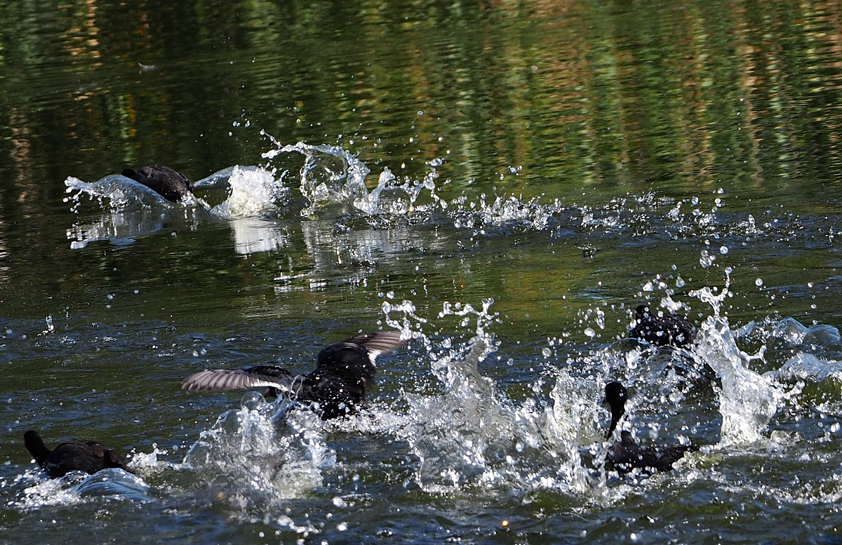 Dzisiaj naliczyłam 11 czarnych. Cały czas stały w towarzystwie czapli, raz tylko kilka wzbiło się w niebo. Kadry podobne do wczorajszych, więc tylko jedno ze stojącymi, bo mnie zjecie za powtarzanie tego samego.