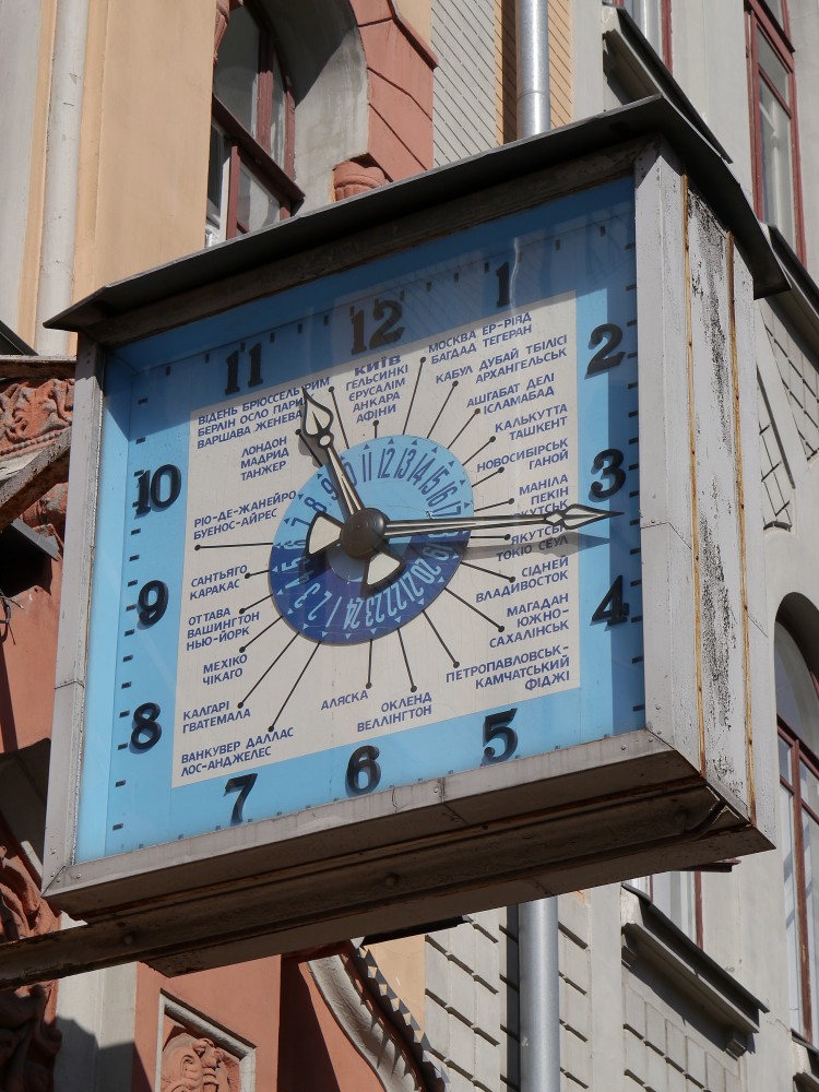 Hmmm... trochę dziwny ten zegar. Napis powyżej godziny 7 wskazuje wspólny czas dla Vancouver, Los Angeles i Dallas. Vancouver i Los Angeles to faktycznie ta sama strefa czasowa, ale Dallas leży w Teksasie - a to zupełnie inna długość geograficzna i czas późniejszy od strefy wybrzeża Pacyfiku o 2 godziny. Również różnica między czasami Alaski i Vancouver to w rzeczywistości 1 godzina, a ze skali tego zegara wynika, ze 2 godziny...