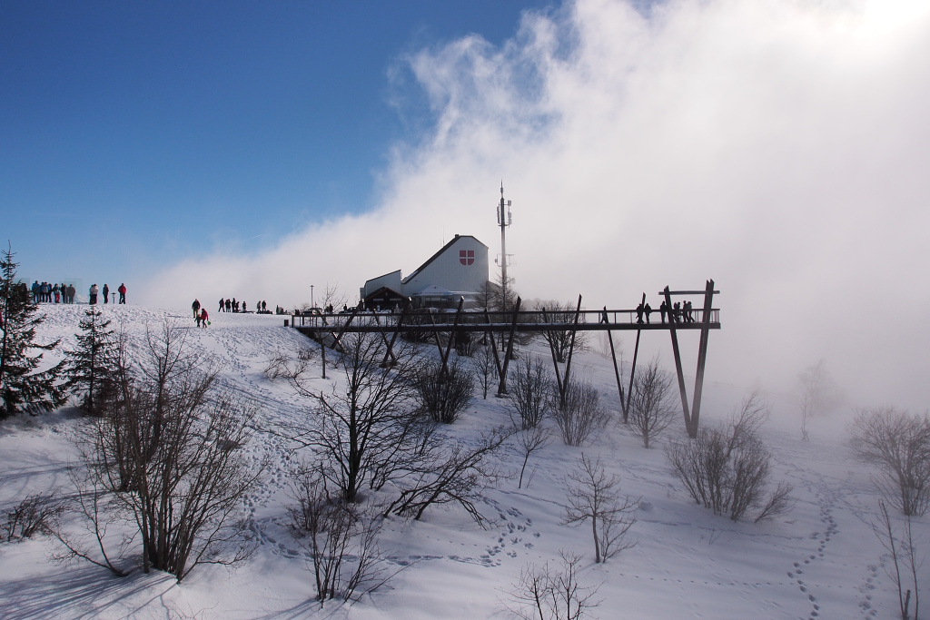 Jako że widoki chmury nam przysłaniały dość szybko ruszyliśmy dalej. Chalets du Sire, 1521m.n.p.m. Parkingi na wysokości 1410m.n.p.m, oczywiści darmowe. Świetne miejsce na narty, cała okolica to bardzo dobrze przygotowane dla narciarzy miejsca z licznymi trasami, parkingami i bazą noclegową. To z tąd po wejściu na punkt widokowy, co zajęło nam jakieś 20 minut można dojść na Le Nivolet w 1,5h. Niestety ekipa z jaką byłem na chodzenie po górach nie bardzo była chętna. Nie bardzo też na dłuższe chodzenie w warunkach zimowych przygotowana. Zaliczyliśmy więc tylko najbliższe punkty widokowe.