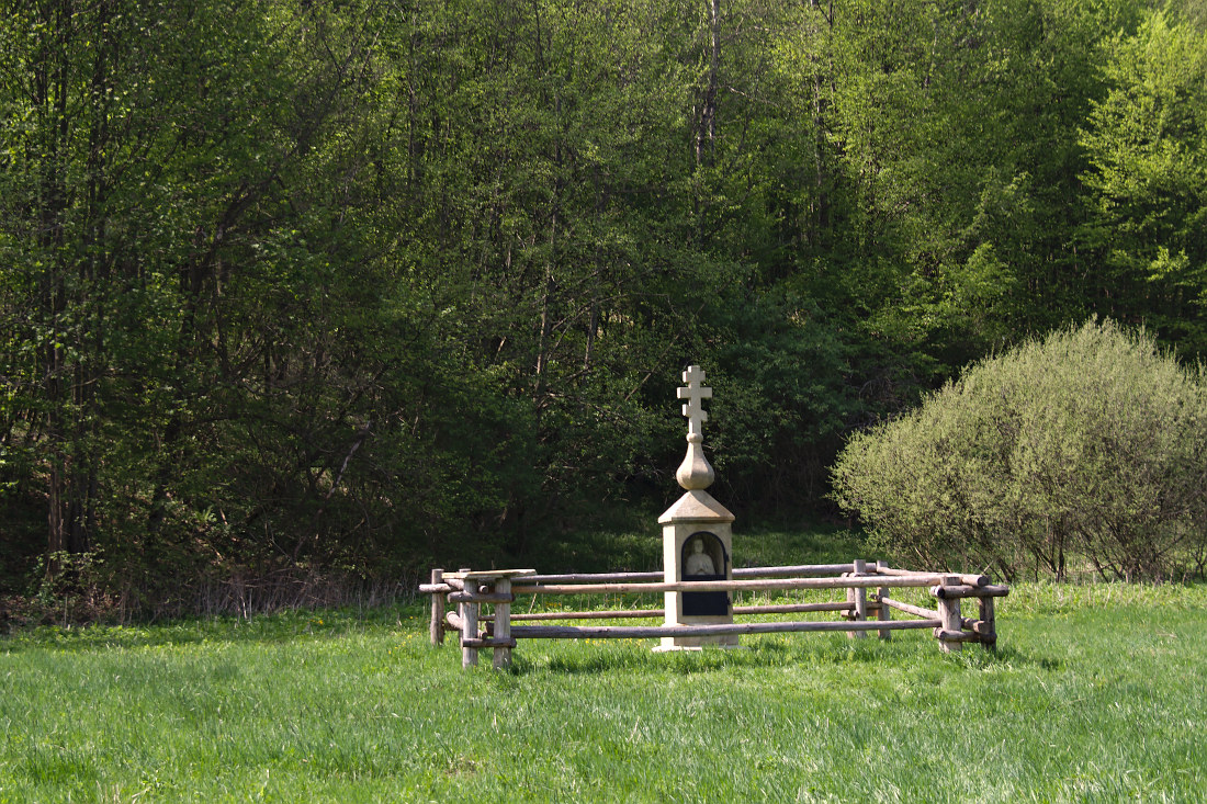 Na terenie byłej wioski pozostało wiele, wiele krzyży. Fajnie, że są odnawiane i ogrodzone przed "macantami" :mrgreen: