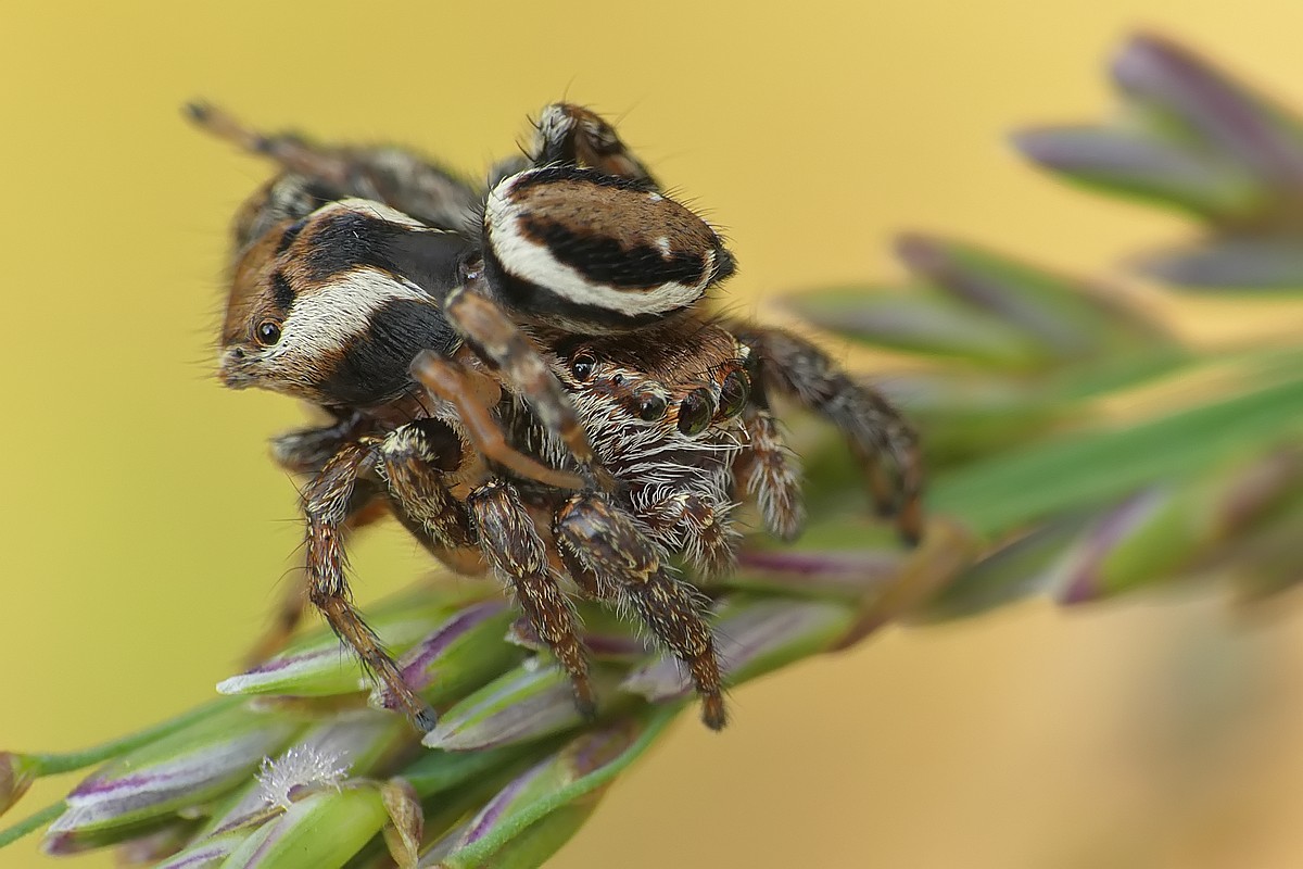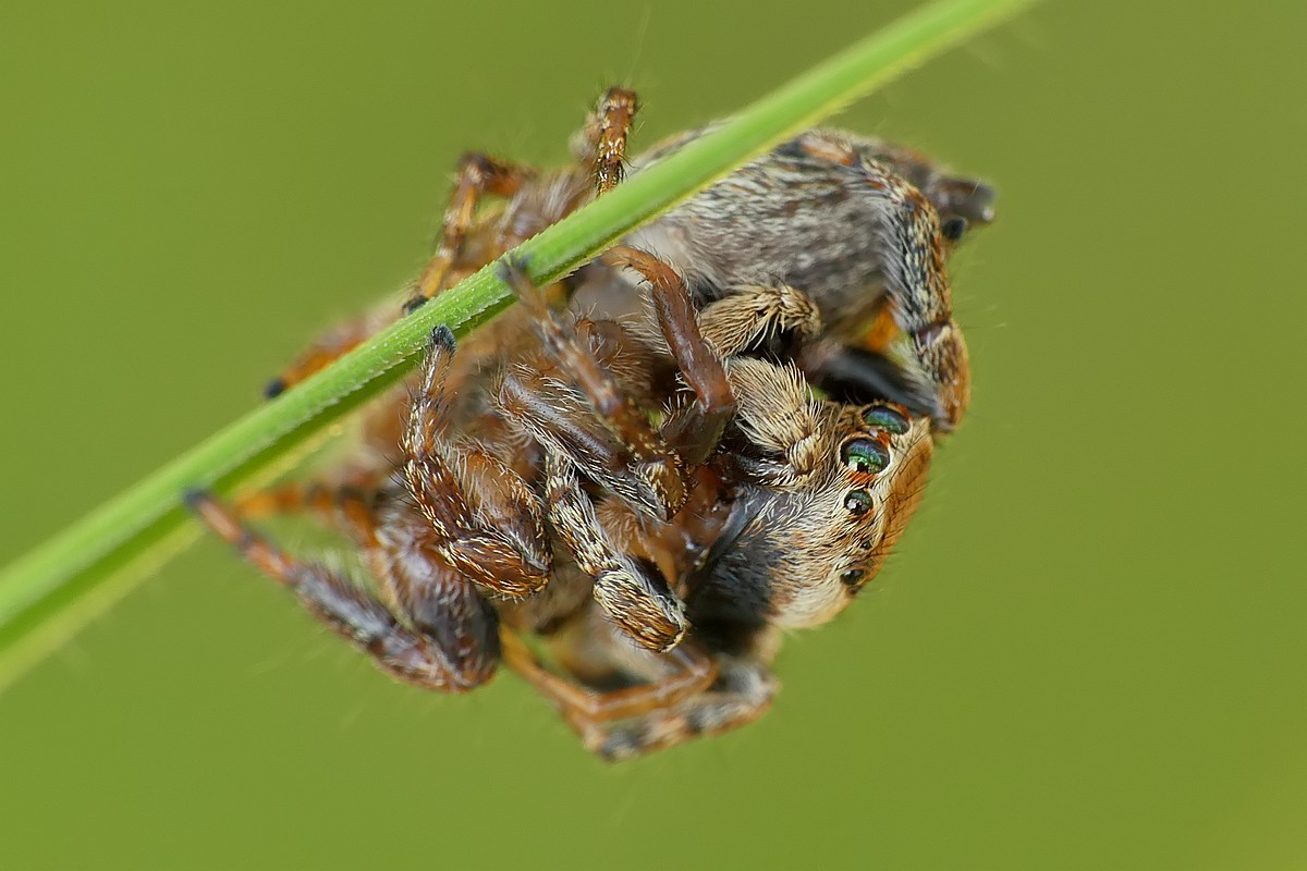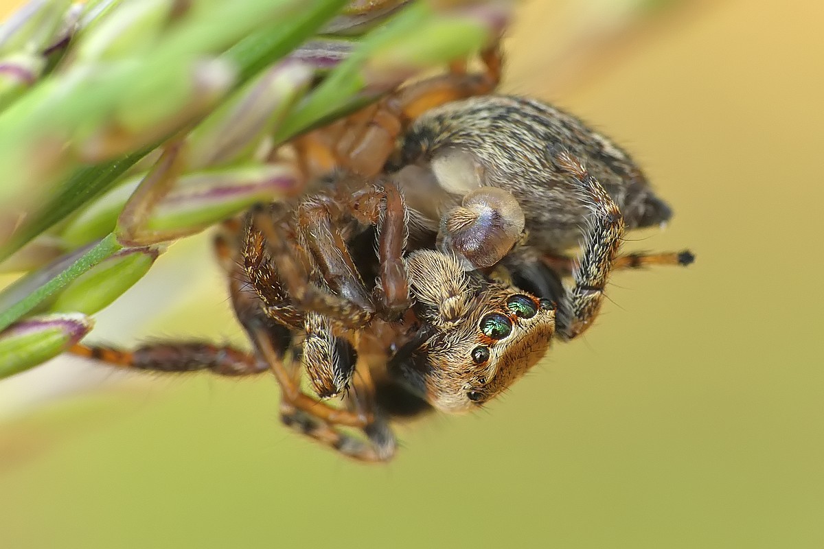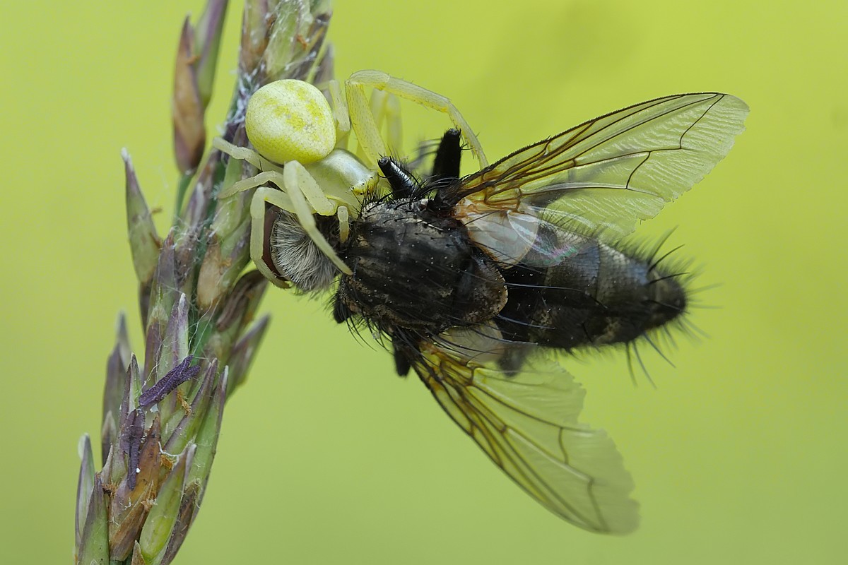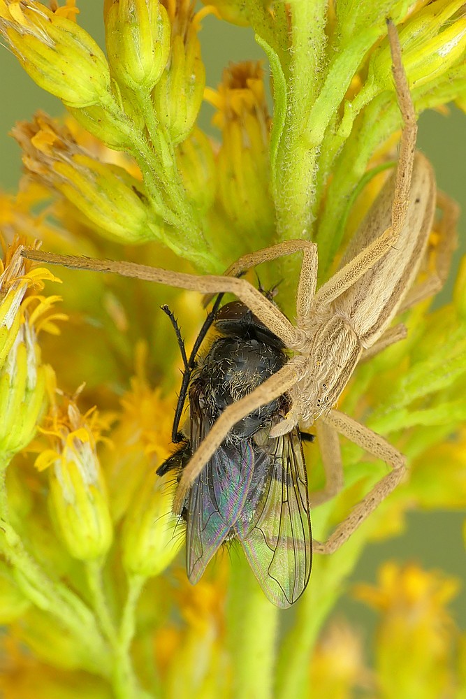 W dzisiejszym odcinku - drapieżny pluskwiak - srogoń baldaszkowiec. Jako ciekawostka - na pierwszym zdjęciu w tle widać innego pluskwiaka, który akurat podczas robienia zdjęcia... spadał z wyżej położonego liścia: