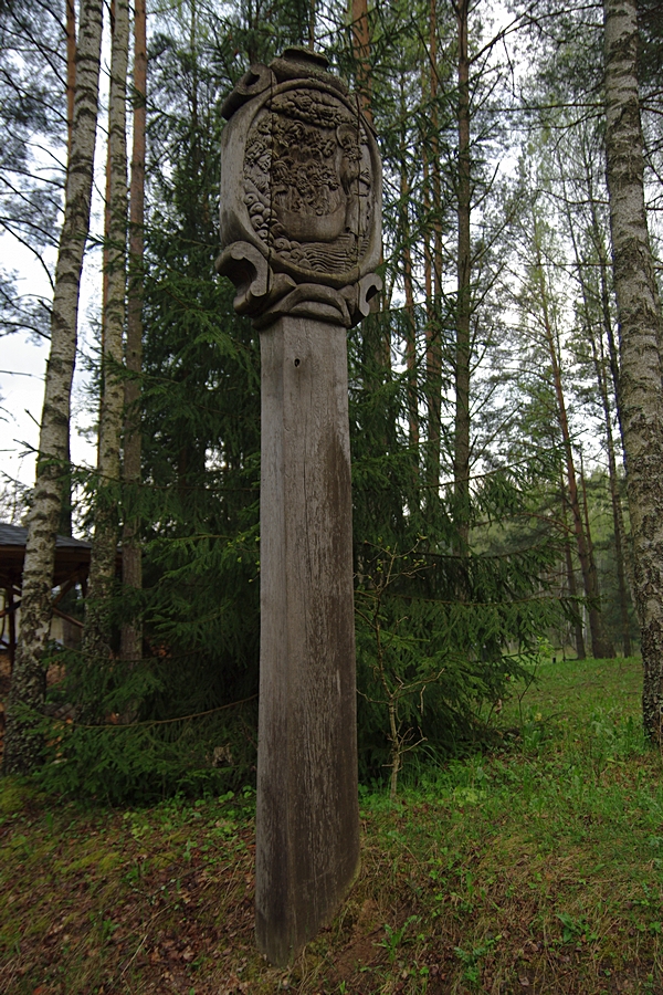 Kolejny obiekt z tego samego miejsca - z postury przypominał mi indiański totem, aczkolwiek treść rzeźby na nim wyglądała na jakiś średniowieczny motyw chrześcijański.