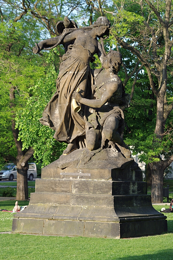Jedna z rzeźb stojących w ogrodzie otaczającym zamek królewski w Pradze: