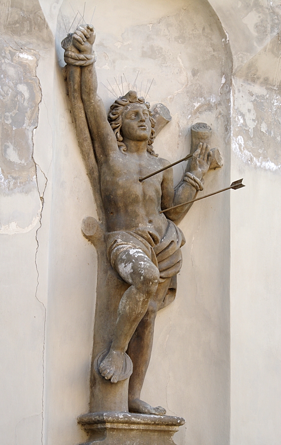 Ok. 60km na wschód od Pragi znajduje się piękne miasteczko Kutna Hora - a w nim naprzeciw budynku kolegium Jezuitów mur nad krawędzią skarpy ozdobiony całym rzędem rzeźb: