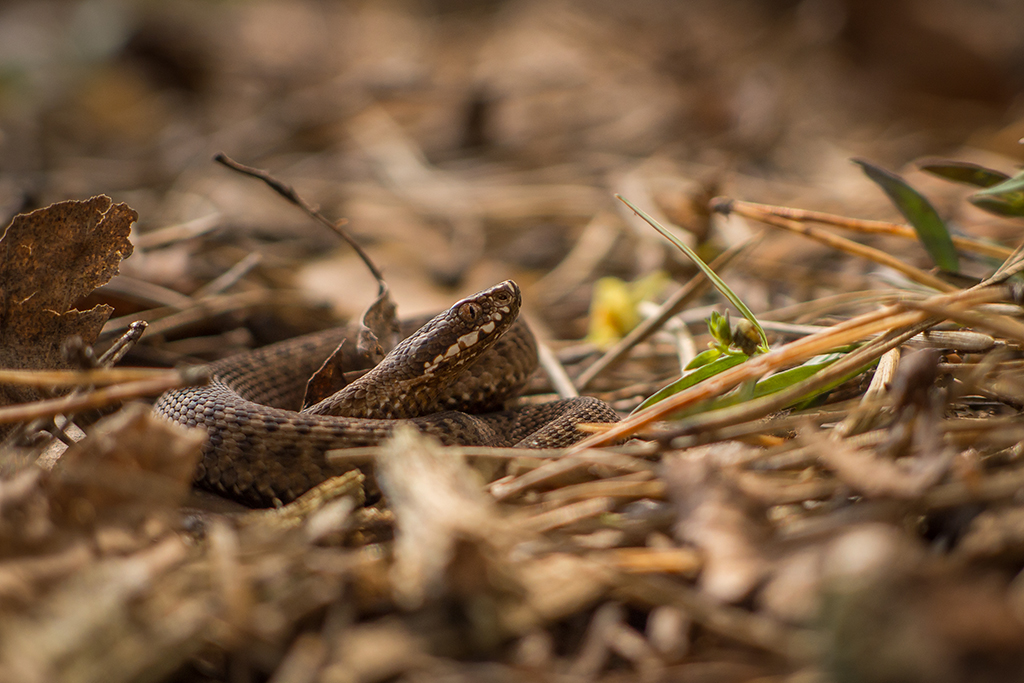 Nie można zapomnieć, że ten aparat świetnie się nadaję do fotografowania z bardzo bliskiej odległości. Żmija ma długość około 15 cm. A obiektyw zasługuję na wielkie brawa