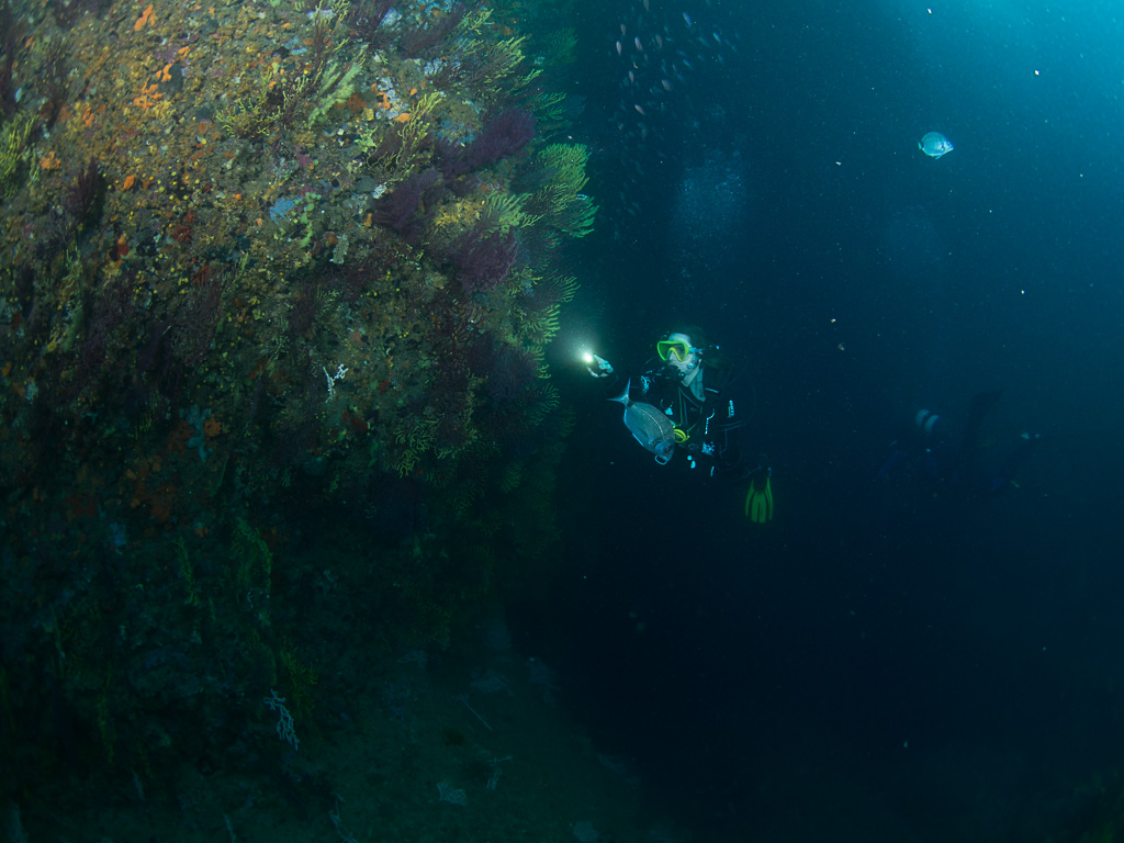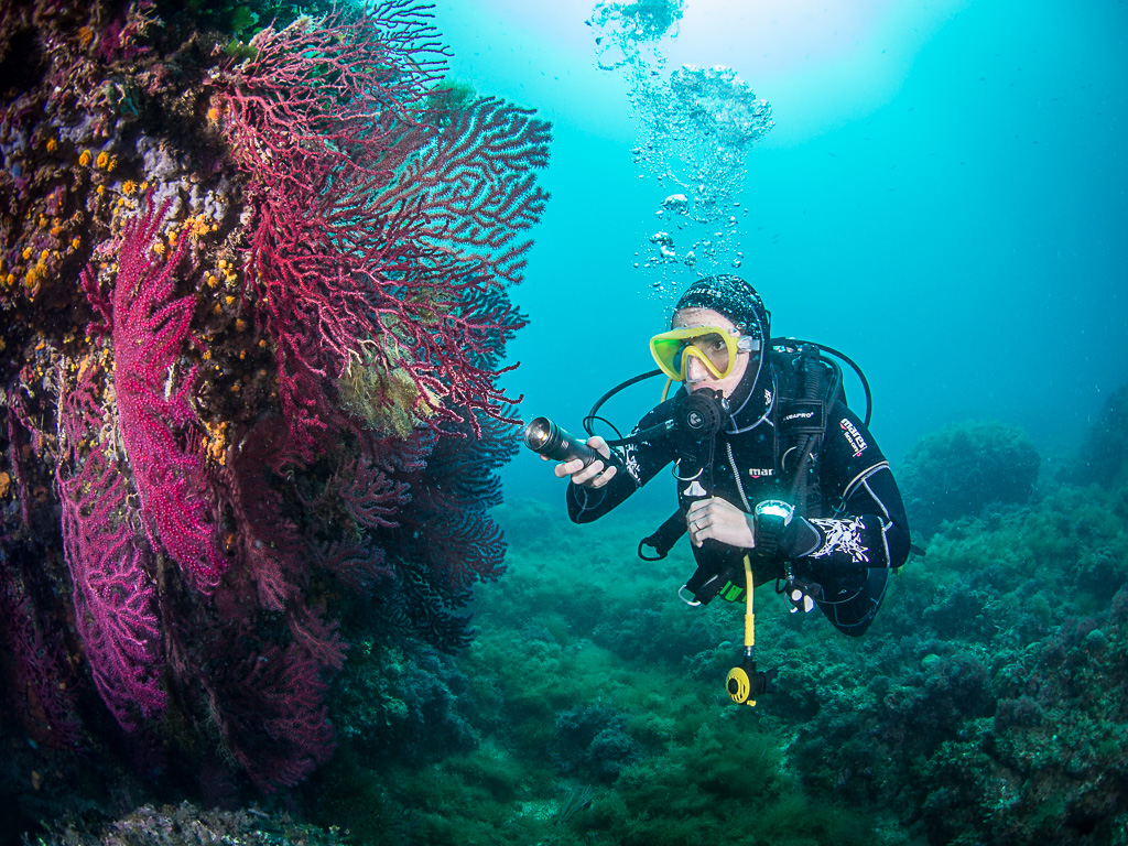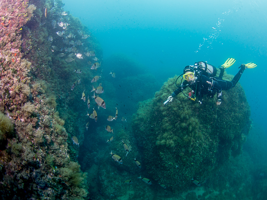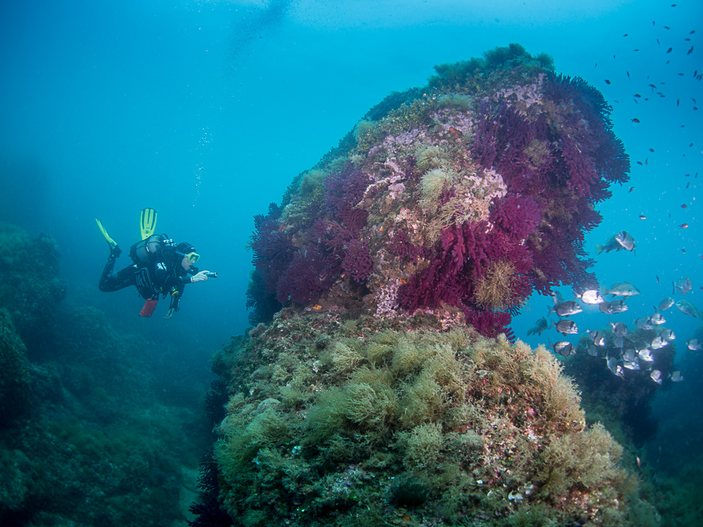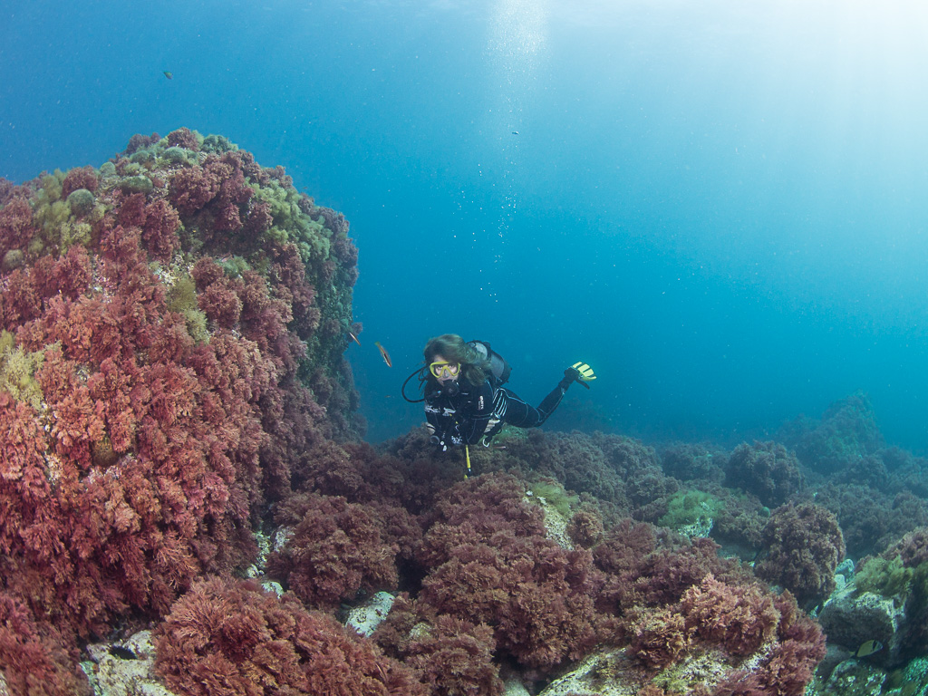 Tym razem był w L'Estartit w czerwcu i nurkowanie na wyspach Medes nie należało do moich ulubionych. Zakwitło morze i algi pokryły kożuchem korale miękkie. Ponieważ huśtało i były mocne prądy cały ten syf z alg unosił się w wodzie mocno ograniczając widoczność. Nurkujących mniej niż we wrześniu ale ryb też mniej przynajmniej wokół nurka bo dalej i tak niewiele było widać.