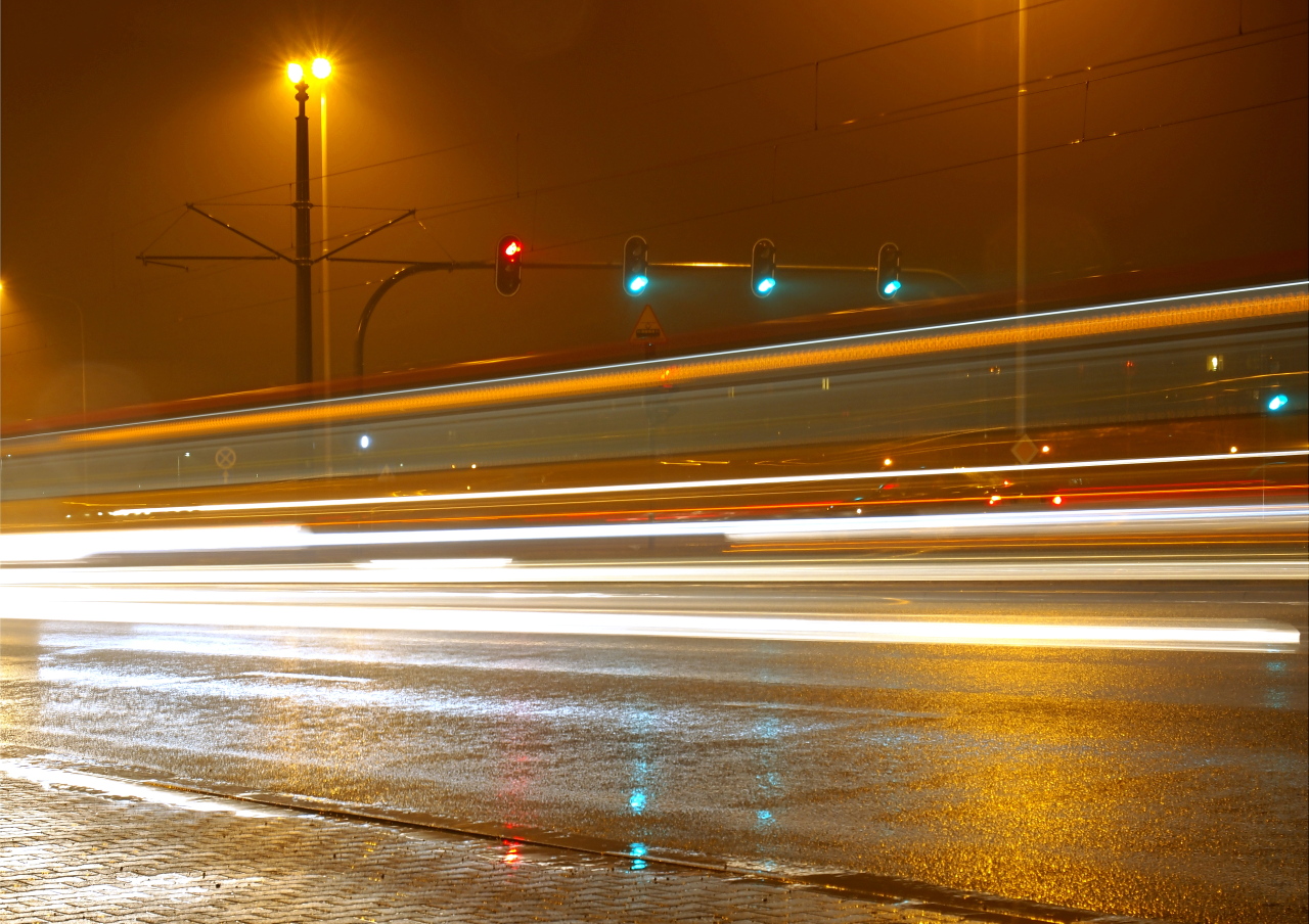 a w środę wieczorem gdy podczas spaceru z Brunem padał deszcz, zaciekawiły mnie pędzące ulicą w strugach deszczu pojazdy.