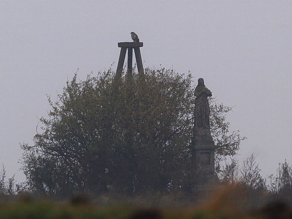 Dla urozmaicenia wątku- kurhannik. Lekka mżawka, chmurno, ciemno, niewiele dało się wydusić. Jakość nie powala, wstawiam bo gatunek raczej w kraju rzadki:wink:. Jakby ktoś spotkał w ciepłej porze roku przerośniętego rudawego myszołowa- to on.