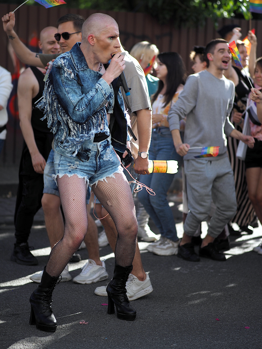 Co robi? Idzie w Marszu Równości. :mrgreen: Niesie ze sobą flagę .