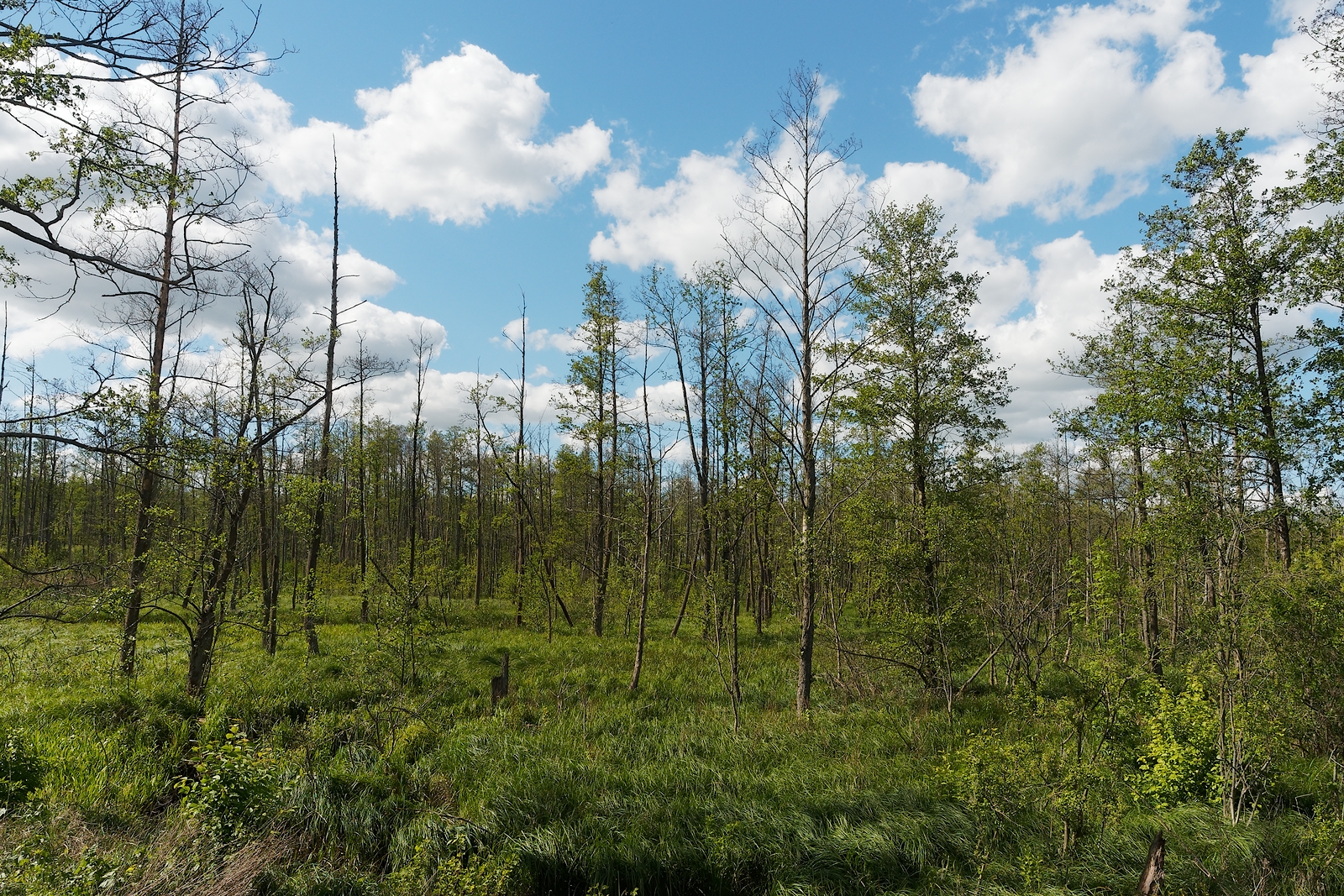 Kiedyś takich bajor w puszczy było wiele, dzisiaj szukałem ich dość długi czas, większość wyschła. Zapuściłem się rowerem głęboko w las i znalazłem, ale jednocześnie się w nim zgubiłem i chyba z 2h mi zajęło by z niego wyjechać na asfalt. Już mi się robiło ciepło bo 2h jechałem cały czas prosto a ciągle drzewa i drzewa i końca nie widać :-P