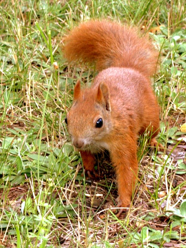 Tutaj (w Irlandii) nazywaja to szarą wiewiórką, szkodnik został przywieziony w XIX wieku z Ameryki Płn. do Anglii w celach "hodowli parkowej". Oczywiście z tejże się wydostał i rozplęgł się niemiłosiernie i wyparł gatunek rodzimy. Podobno ma mniejsze wymagania co do pokarmu od rudych, a co gorsza szybciej się mnoży. W Wielkiej Brytanii wypowiedano im wojnę co najmniej 2 razy, ale niestety nie pozbyto sie ich. Podobno rudą wiewiórkę można zobaczyć na większej z Wysp Brytyjskich tylko na okolicznych wysepkach tam gdzie szare nie dopłynęły. W Irlandii rude jeszcze żyją na stałym lądzie (choć ja rudej nigdy nie spotkałem). Informacje, które tu podałem są przeze mnie zasłyszane lub przeczytane w internecie, być może sytuacja w WB odnośnie rudych wiewiórek nie jest tak tragiczna.