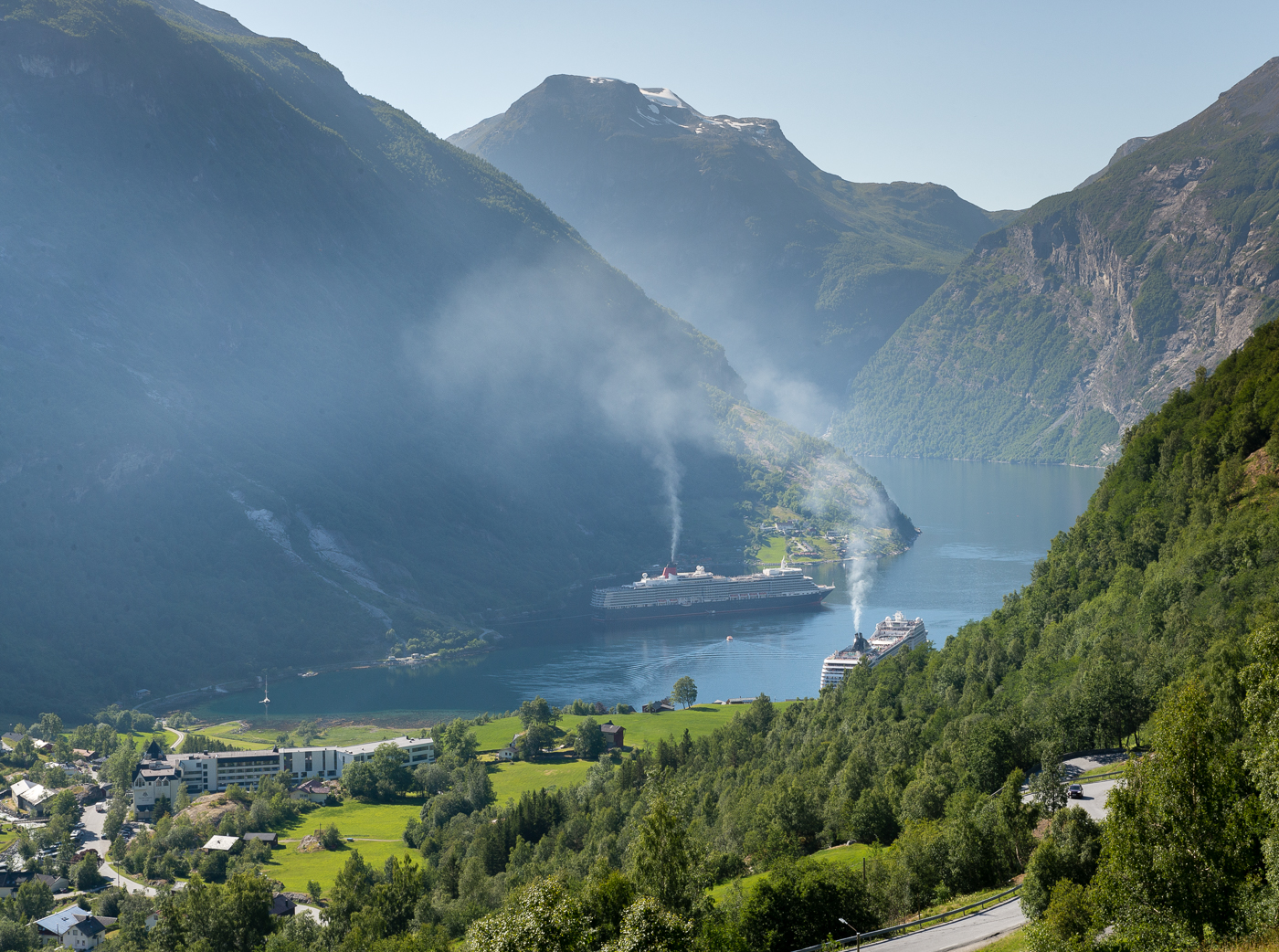 Te "śmieerdziele" cumują tam nawet przez 12 godzin. I przez cały ten czas "kataryna" kręci się, aby zasilić generator pokładowy. Problemu nie widać w wietrzny dzień. Jednak w "wyżową" pogodę jest tragicznie. W centru miasta cuchnie mniej niż tu, konkretnie w Geiranger. To obowiązkowe miejsce postoju tych potworów :), bo niedaleko jest Dalsnibba i Mollsbygda, które każdy zwiedzający w dwa tygodnie Norwegię obowiązkowo musi zaliczyć .