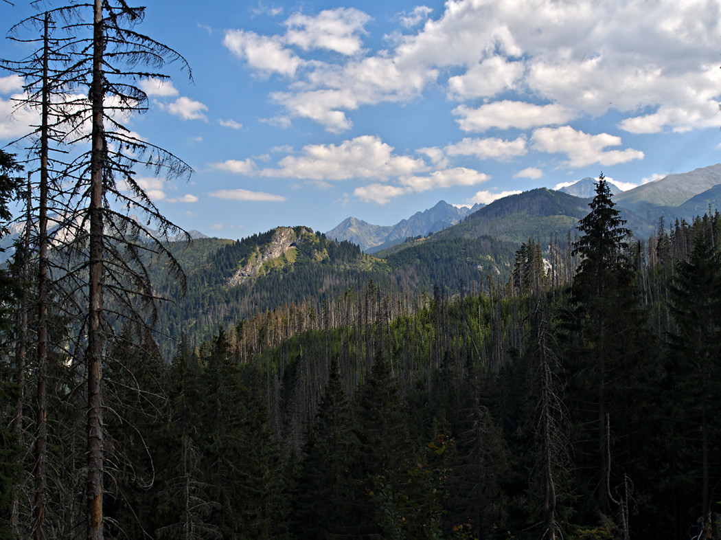 Ostatni skręt - ze szlaku czarnego, skręcamy na szlak niebieski prowadzący do Palenicy Białczańskiej. Odcinek dość długi, ale niezbyt wymagający. Szlak wyłożony kamieniami... wspominałem gdzieś wcześniej, że wolę dziki, naturalny. Schodzimy cały czas w dół, a że wychodzimy z lasu, zaczynają się widoki.