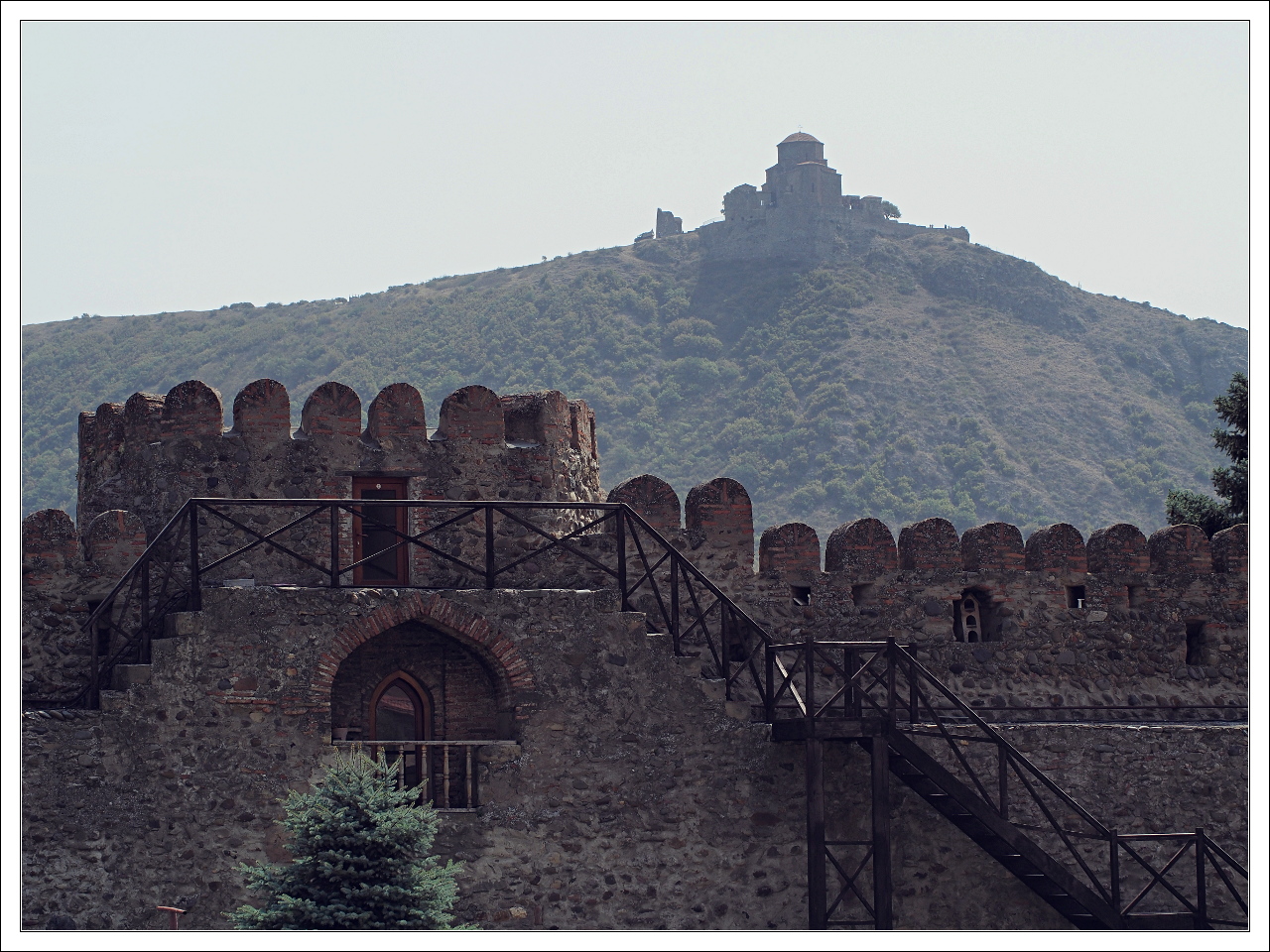 Monastyr Dżwari związany jest z legendą o św. Nino która podobno sama wskazała miejsce w którym ma być wybudowany. Obecna budowla pochodzi z VI w i dla Gruzinów jest tym czym da chrześcijan w Polsce jest Jasna Góra. Monastyr widać z daleka i gdy bogobojny Grzuzin przejeżdża biegnącą w dole autostradą zawsze nabożnie żegna się albo sięga ręką do zawieszonego na lusterku różańca czy medalika.