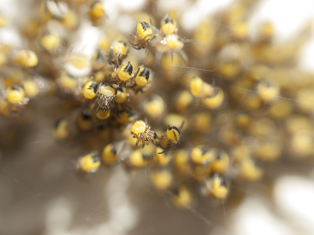 Jak tylko mam okazję próbuję swoich sił z makro. Dzisiaj znalazłem coś bardzo ciekawego - młode pająki krzyżaki na moim tarasie (miejmy nadzieję że mnie nie zeżrą którejś nocy).