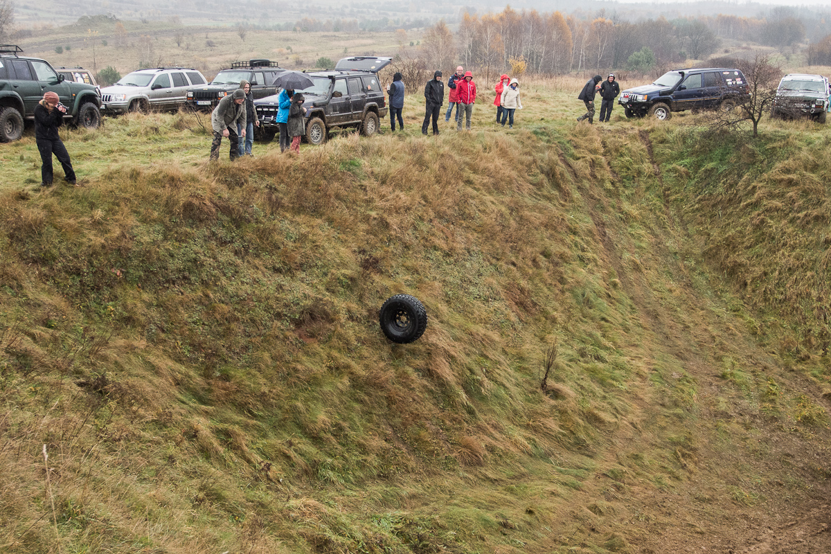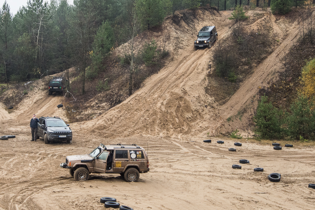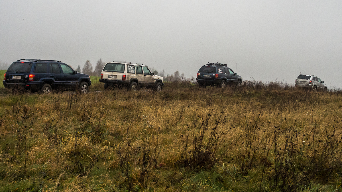 Listopadowy długi weekend dostarczył nam dość sporo emocji. Zaczęło się od sobotnio-niedzielnego wyjazdu offroadowego. Pojechaliđ§z jako załoga w ponad 90 km szlak z metą w piaskowni. Pogoda była świetna, lało tylko kilka godzin. Nasz samochód: KL w stanie fabrycznym też dał radę, choć czasem brakowało nam lepszego ogumienia, wyciągarki, lin, lewarów itd. Na szczęście, w punktach przeprawowych, można było się zabrać jako balast na pokład samochodów których właściciele nie byli zbytnio konserwatywni. Nie chcialiśmy tez uszkodzić funkel nówki Trailhawka.