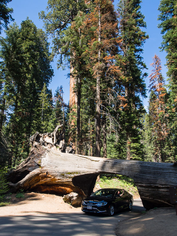 Na sam koniec zwiedzania podjechaliśmy jeszcze w miejsce, które znane z wielu zdjęć dostępnych w internecie. Przejazd samochodem pod powalonym, gigantycznym drzewem. Chwilę trzeba było odstać w kolejce, szybki przyjazd, fotka i kolejny cel wycieczki - Los Angeles.