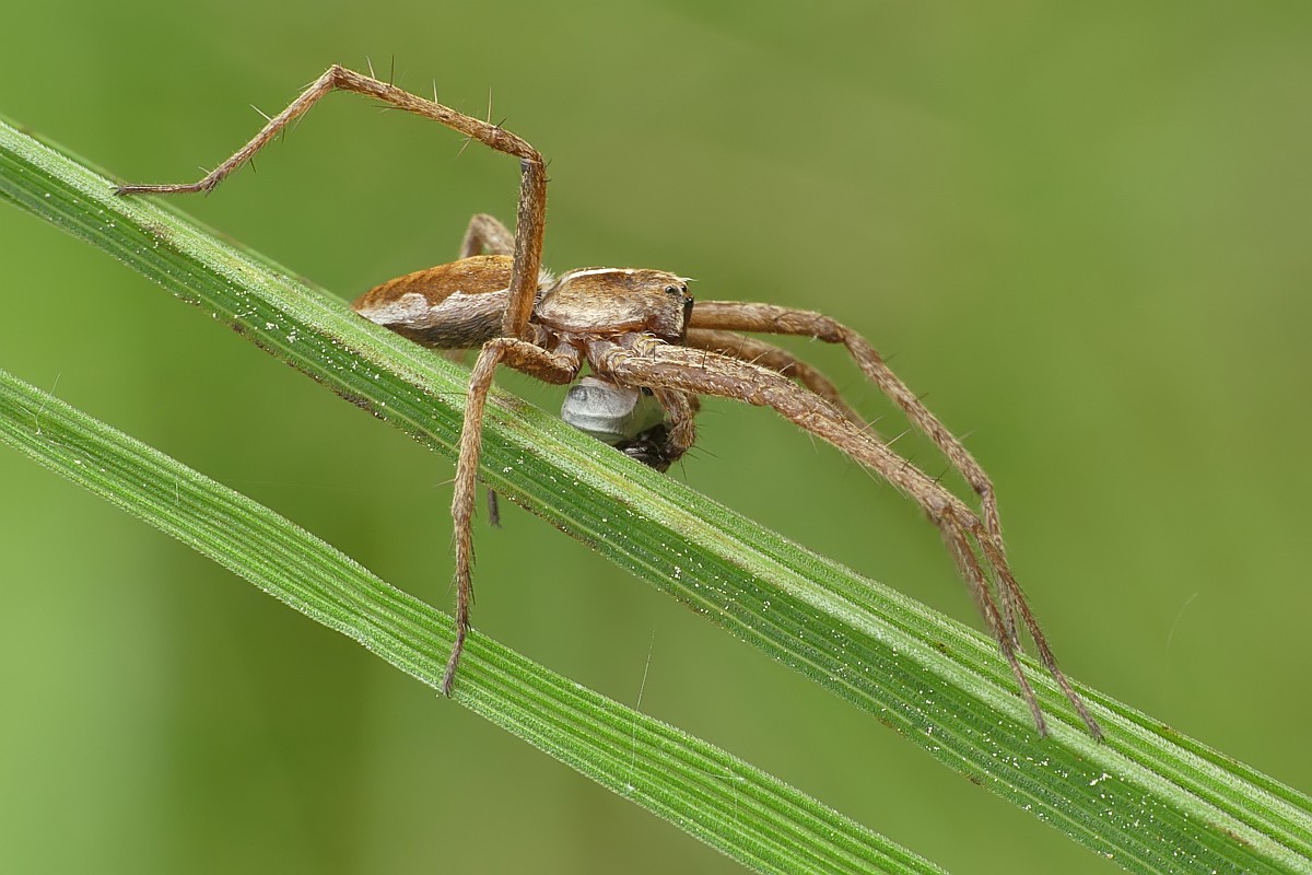 Wczoraj był posiłek darownika, dziś darownik podczas ciężkiej pracy noszenia kokonu jajowego: