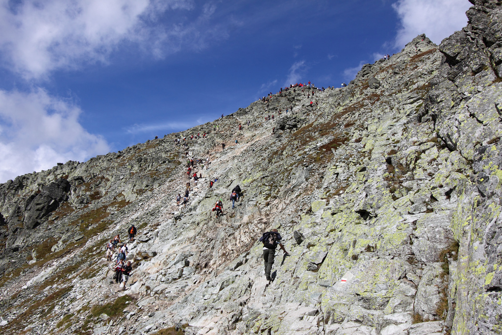 Jak się wejdzie na szlak, to od lewej dołącza szlak z Strbskiego Plesa. Najpierw chyba zielony, a potem czerwony już do szczytu.