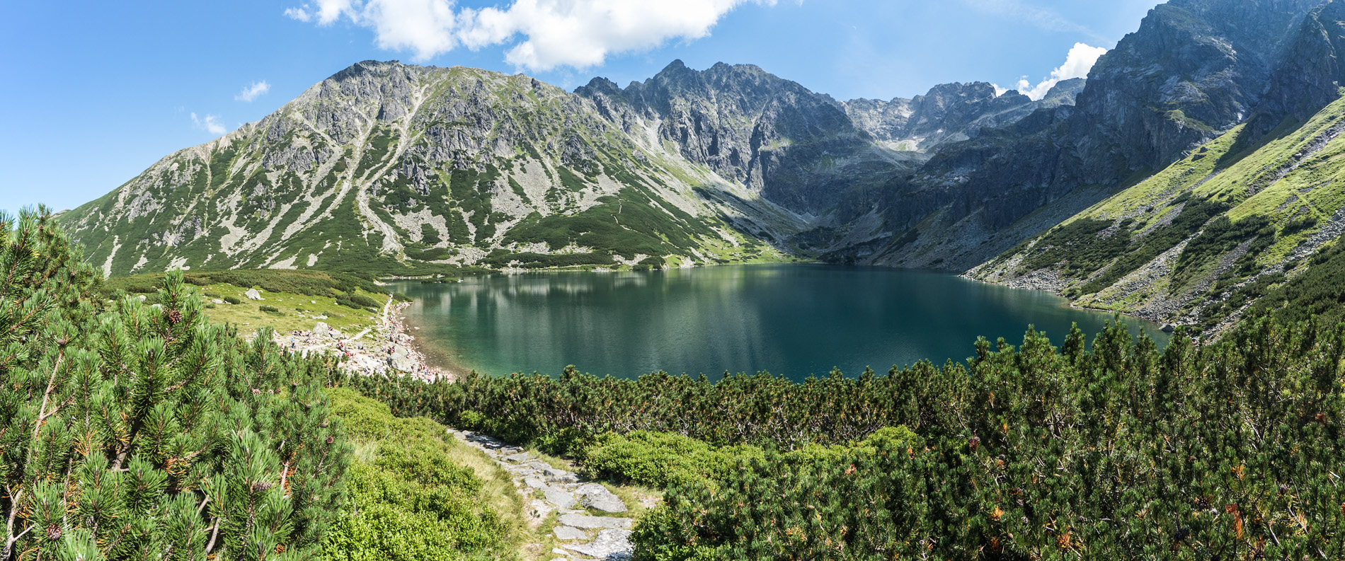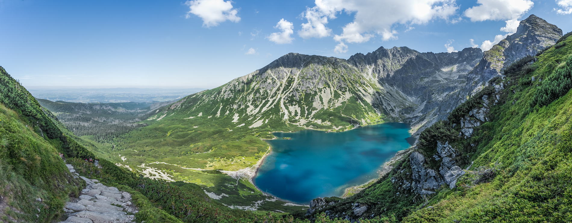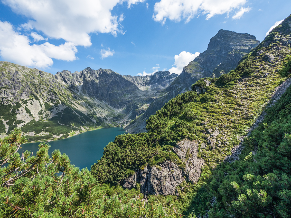 Widok z przełęczy na lewo od Łomnicy. Widać tu Dolinę Pięciu Stawów Spiskich i szlak do niej prowadzący (do zaliczenia wkrótce :smile:). Lodowy w chmurach, na lewo od niego Lodowa Przełęcz, którą dalej prowadzi szlak do Doliny Jaworowej. Możemy też skręcić w lewo przez Czerwoną Ławkę do Staroleśnej Doliny.