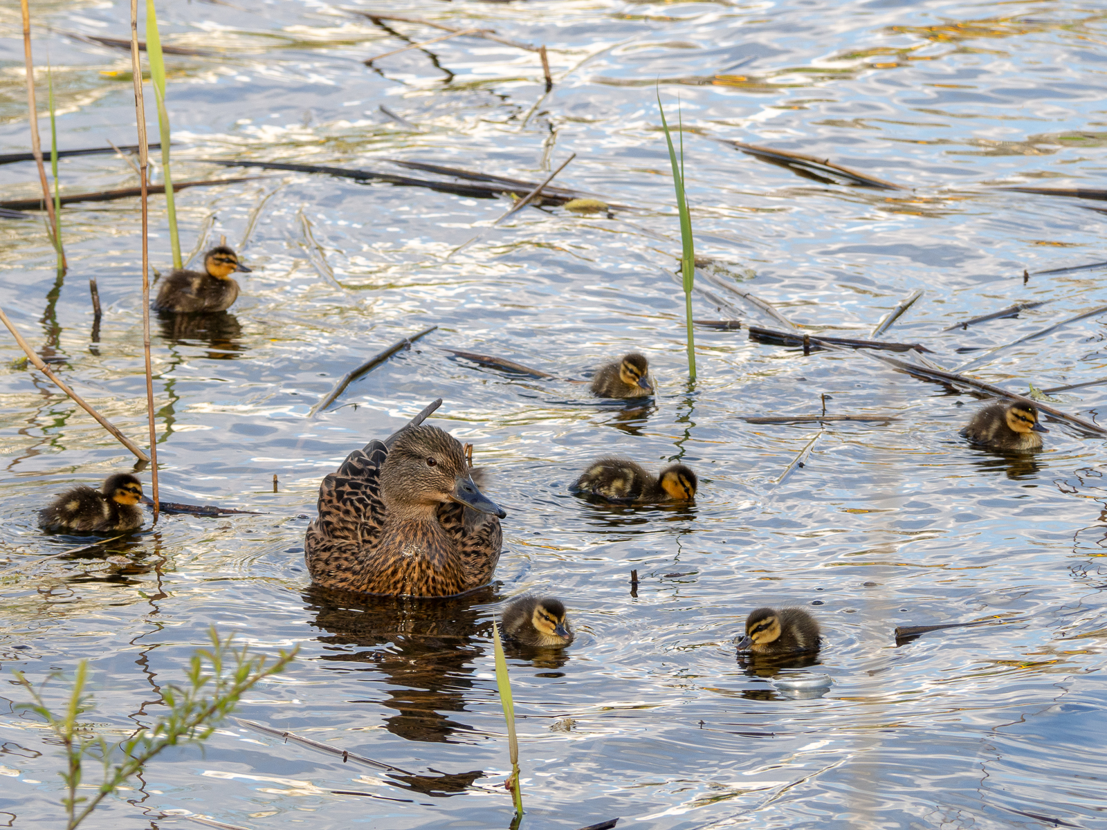 Ładne zdjęcie - puchate kulki, matka z fajnym wzorem i dobrze oddane światło i refleksy na wodzie.