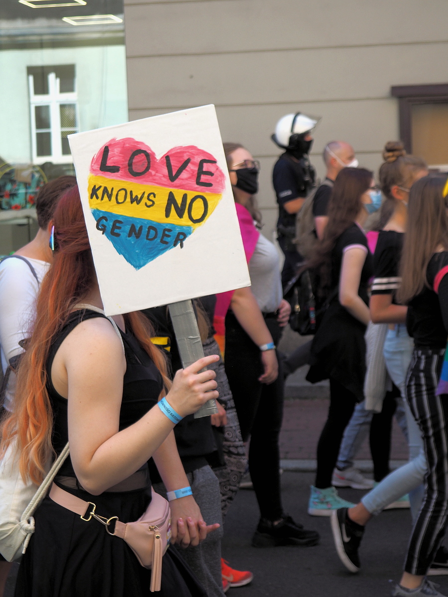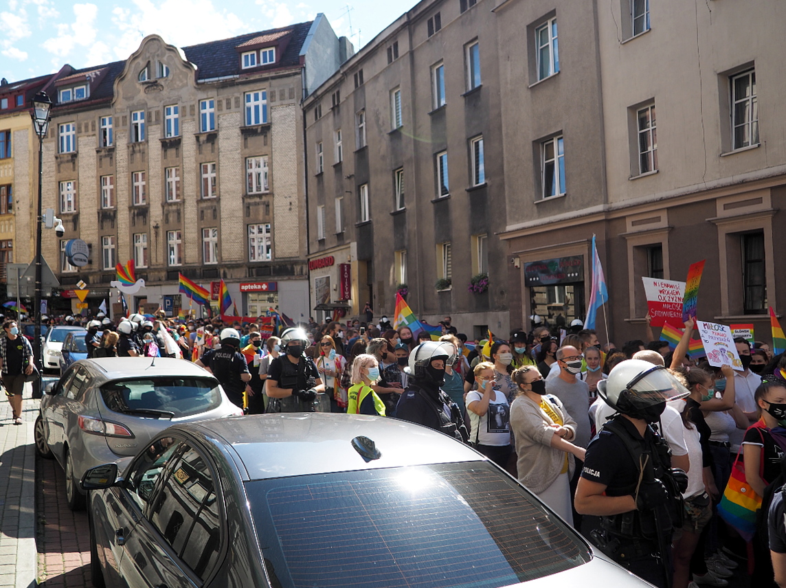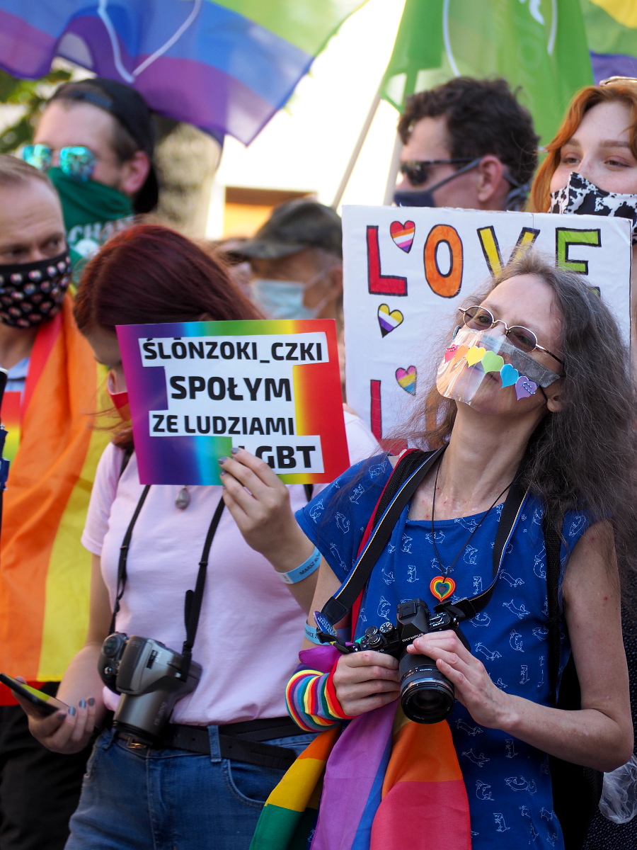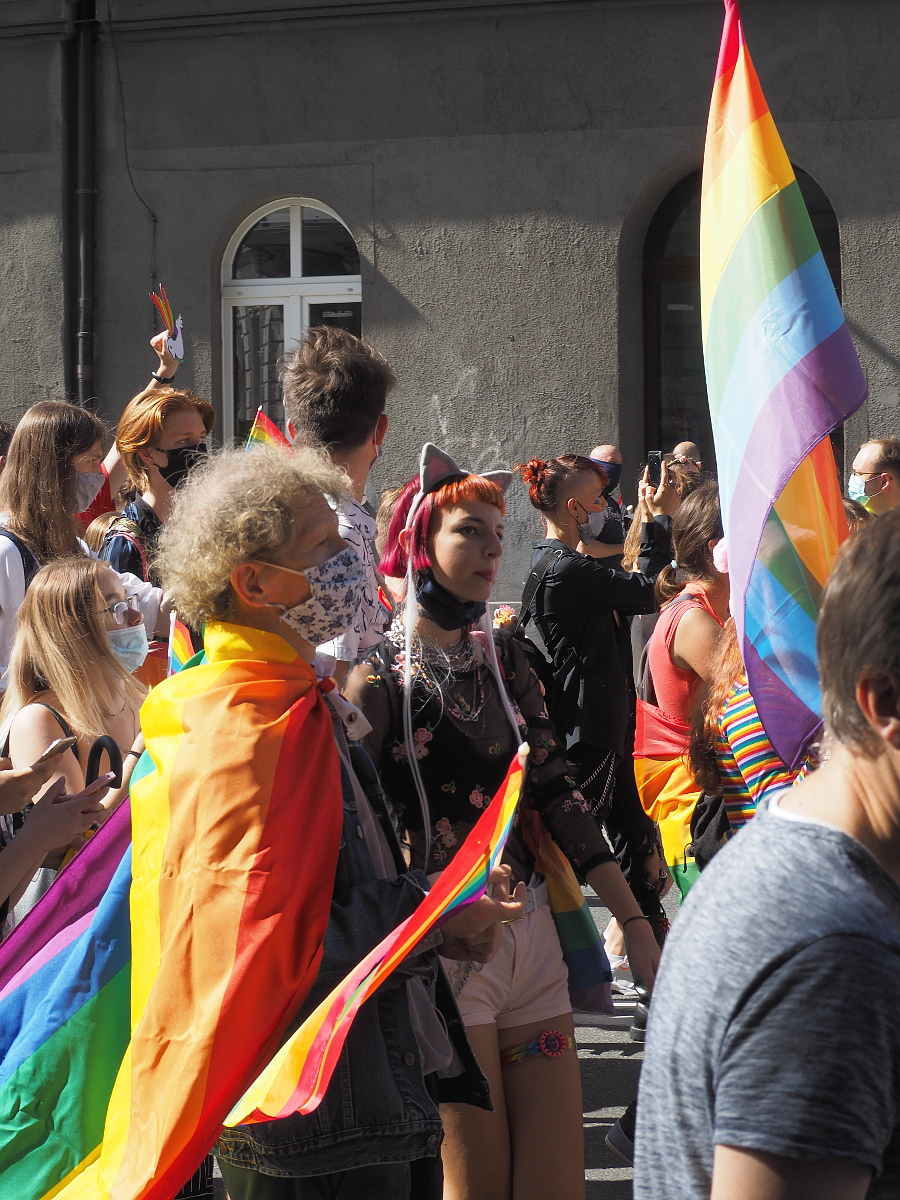 Bardzo fajnie dokumentujące zdjęcia marsz równości, pokazują marsz z pomysłem, z różnych stron i od zewnątrz włącznie z panią, która wyświęca demonstrantów różańcem.