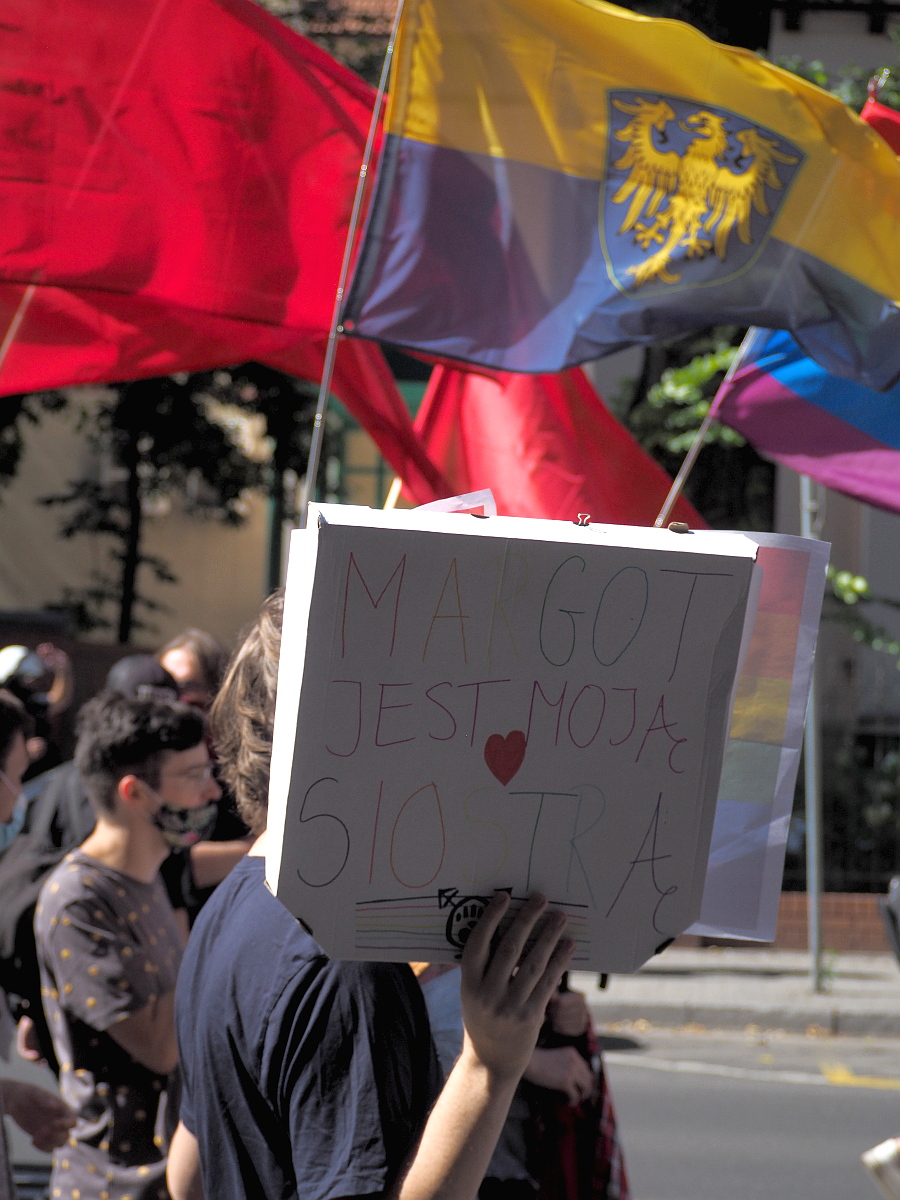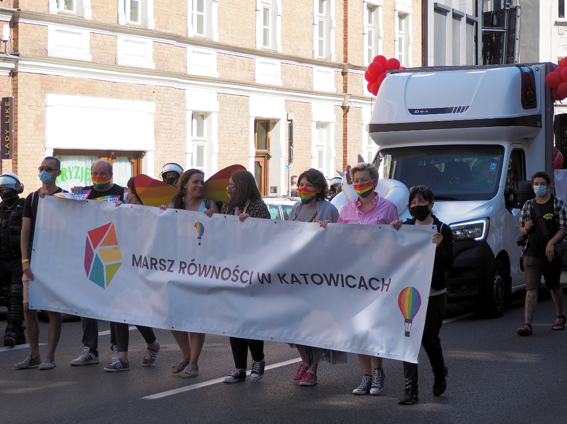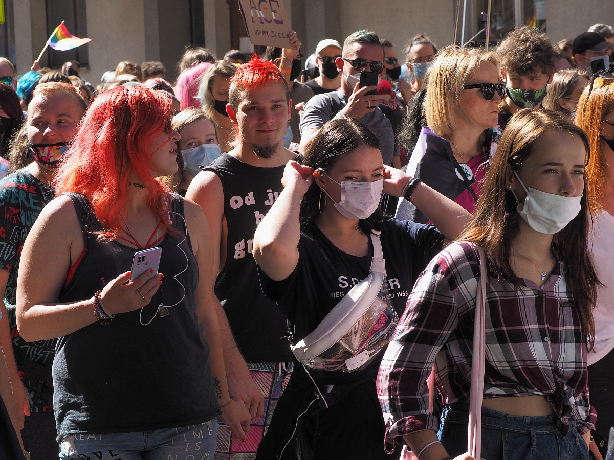Bardzo fajnie dokumentujące zdjęcia marsz równości, pokazują marsz z pomysłem, z różnych stron i od zewnątrz włącznie z panią, która wyświęca demonstrantów różańcem.