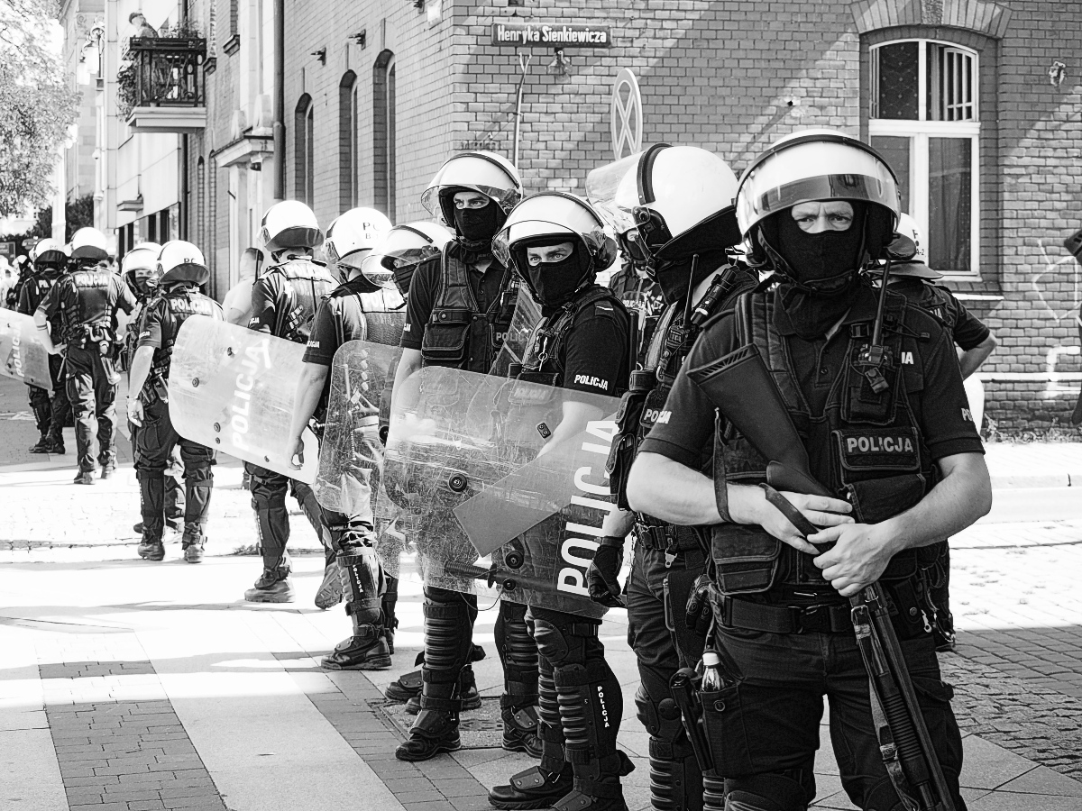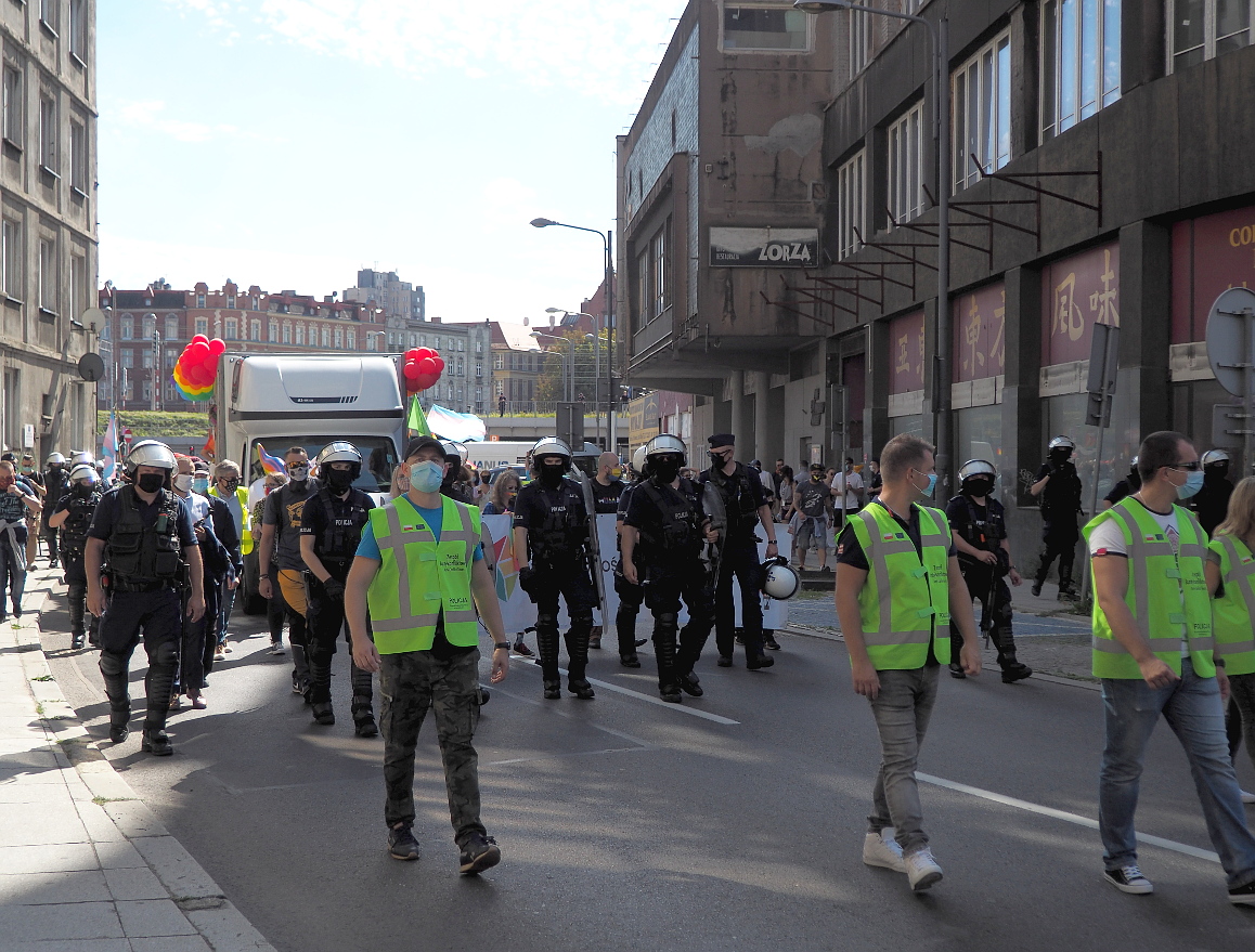 Przemarsz uczestników w mocnej policyjnej ochronie.