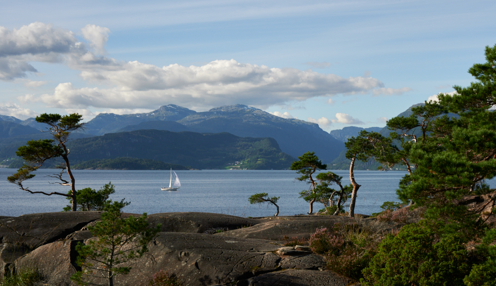 1161 - bardzo ładny landszaft, urokliwy. Drzewa na brzegu fiordu supermalownicze, wykwintne.