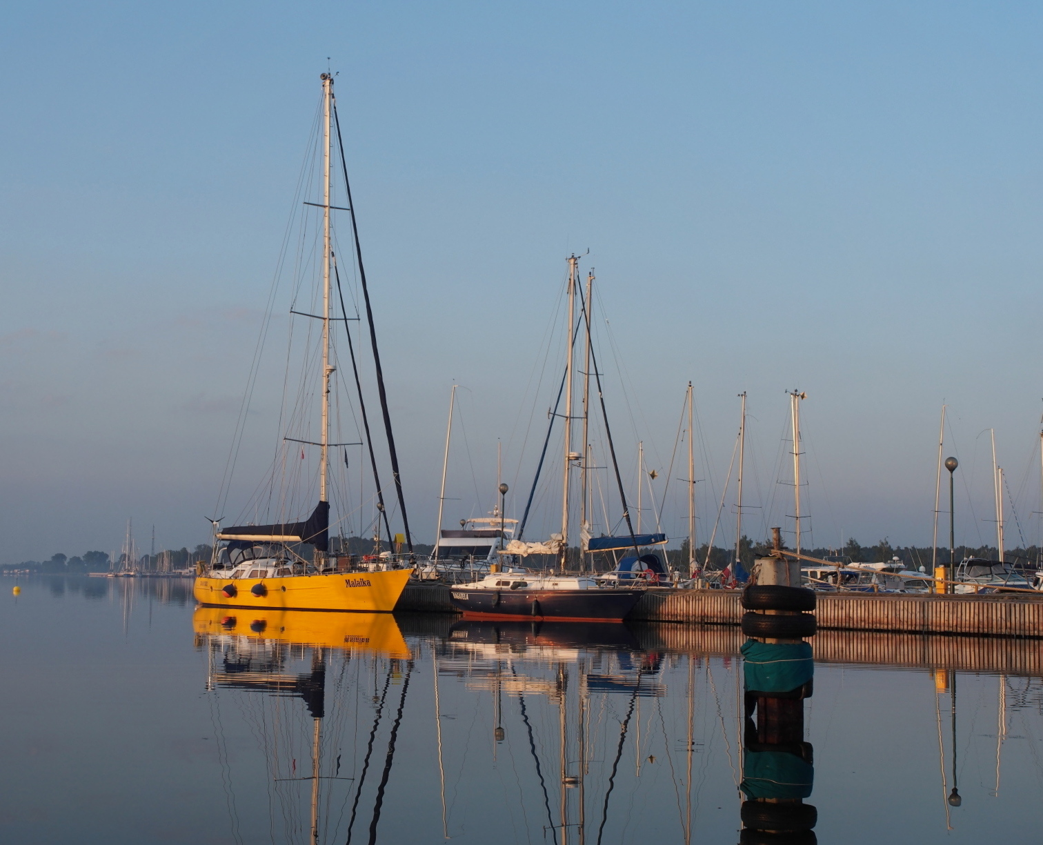 Jacht zostal przekazny armatorowi, wszysztkie jachty stoja dziobem do kei my natomiast rufa :-)