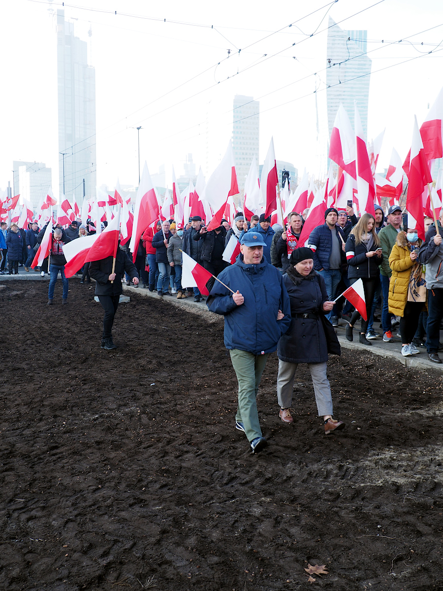 Na późniejszych zdjęciach będzie widać o wiele więcej polskich biało-czerwonych flag.