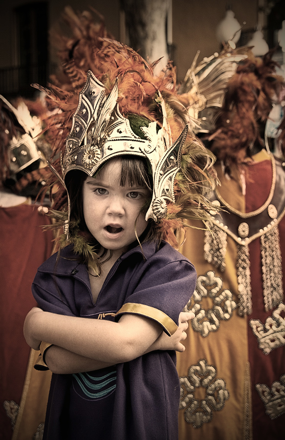 Otoz ta dziewczynka chciala paradowac razem z chlopcami. Darla sie w nieboglosy, ze chce kask, zbroje i szable i chce tak jak oni.
