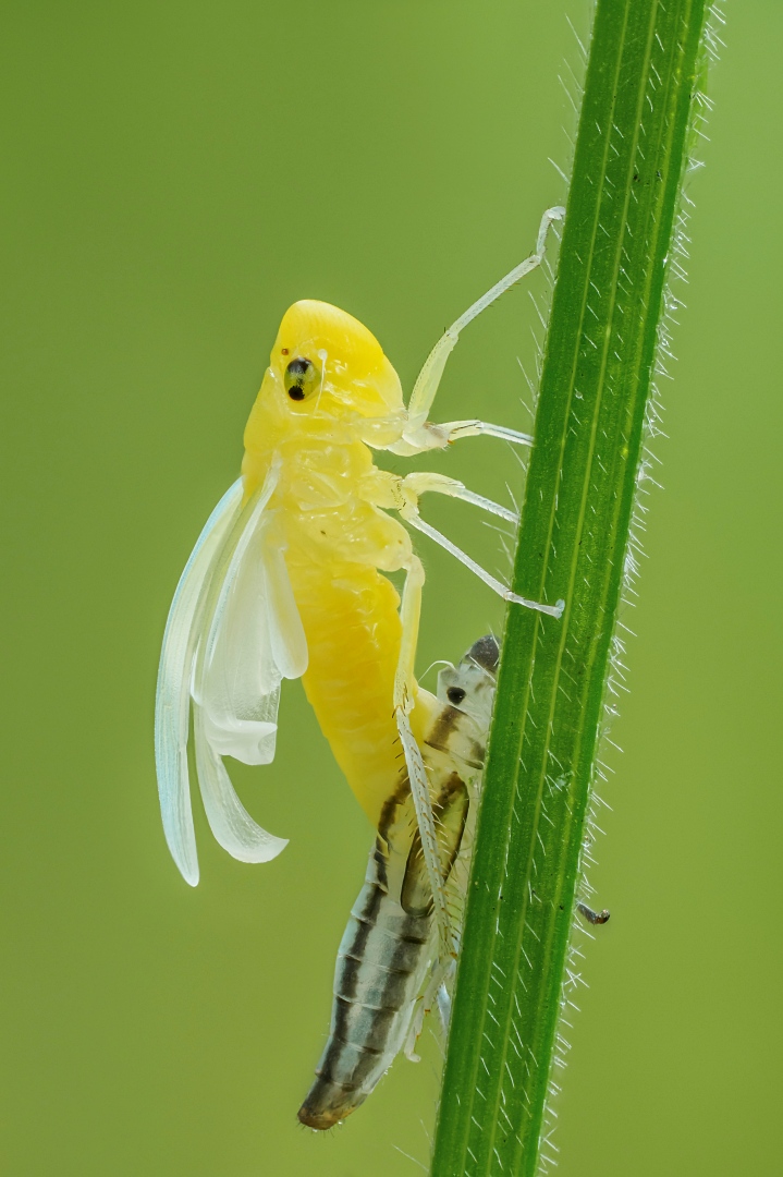 Świetne zdjęcia, wylinki zawsze wychodzą efektownie......Jęsli wszystkie to stacki (a tak mi sie wydaje) to szczególnie gratuluję 598, bo samo wyjscie ze skóry trwa czesto krótko i jest dosyć gwałtownym procesem, gdzie owad wygina sie na różne strony, tu uchwycone bezbłednie. Później jak juz nadmucha skrzydła i "schnie", to ma długie chwile bezruchu.