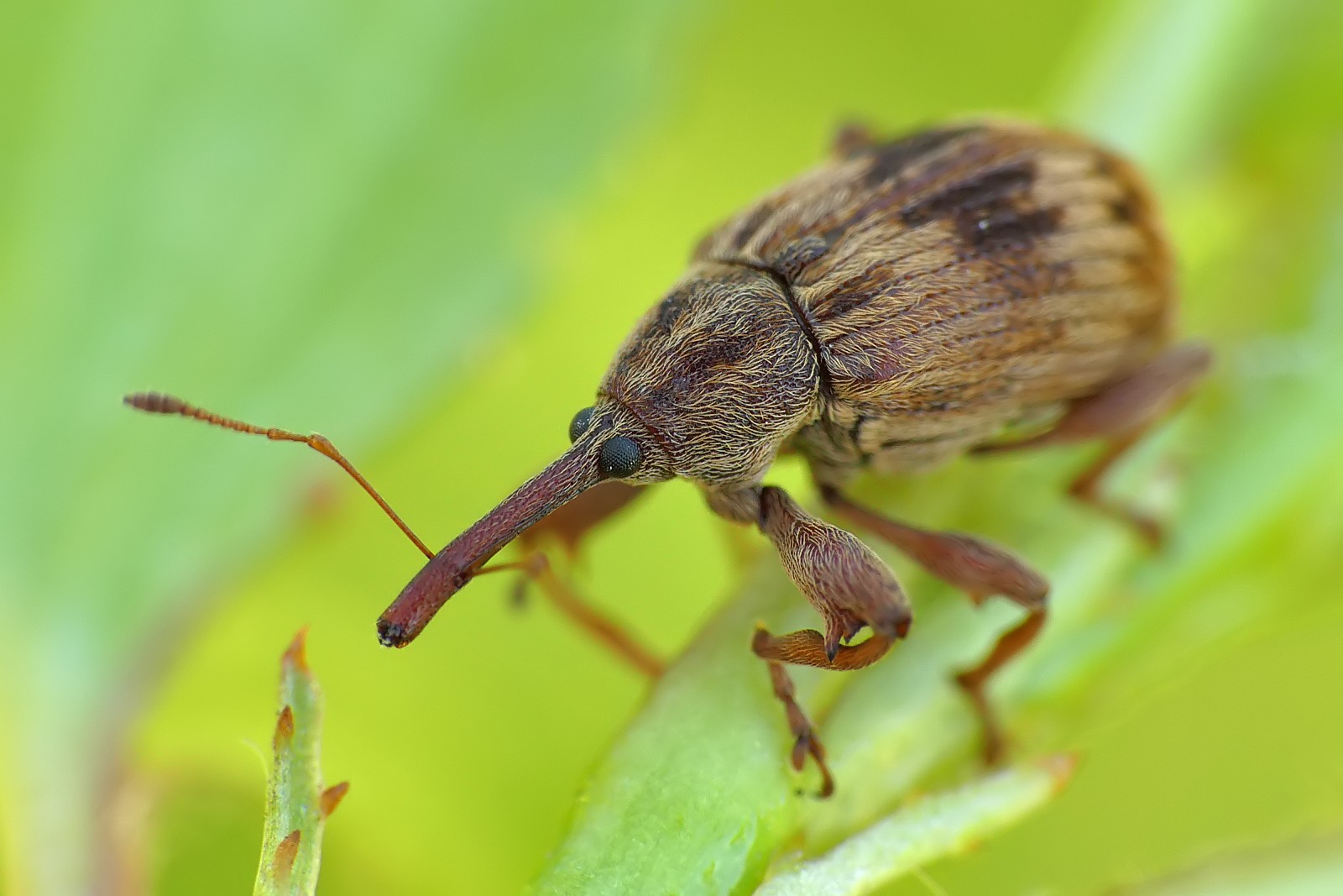 Po słoniku jakiś inny ryjkowiec - podobnej wielkości ale ze znacznie kr54ótszym ryjkiem. Gatunku niestety nie znam: