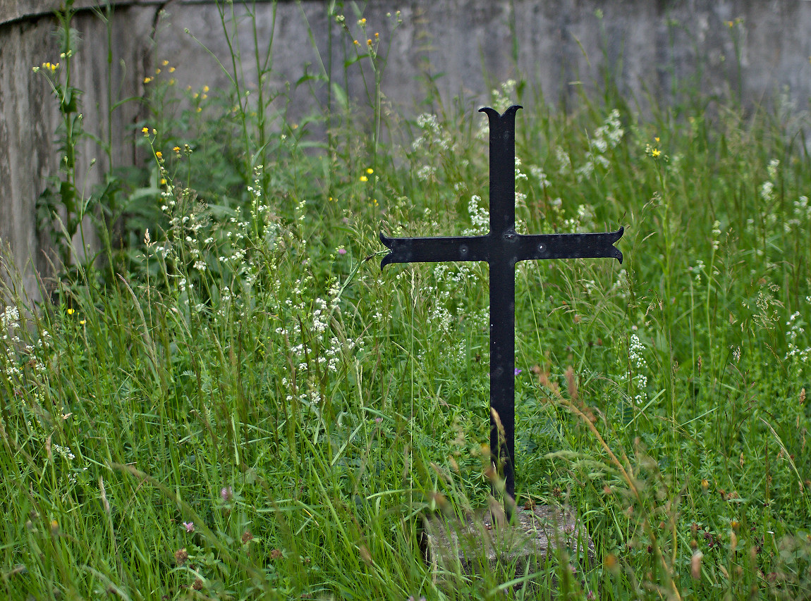 Ale jeden się zachował. Mech porastający płytki chodnikowe świadczy, że nikt tam nie zagląda. Brak zniczy i kwiatów też o czymś mówi.