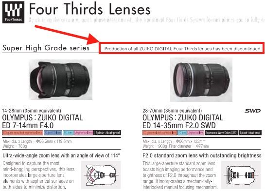 Firma Olympus ogłosiła oficjalne zakończenie produkcji obiektywów dla ich nierozwijanego od kilku lat lustrzankowego systemu Cztery Trzecie.