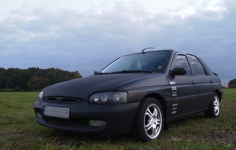 Jako, że wczoraj alternator w moim samochodzie powiedział walę robotę i strajkuję a nowy zamówiony przyjdzie dopiero pojutrze więc od dzisiaj użytkuję rodzinne auto zastępcze :). Pojęcie samochodu zastępczego pewnie znacie, natomiast rodzinne zastępcze to może dla Was nowe pojęcie ale postanowiliśmy razem z tatą i bratem zostawić tego Escorta w razie nagłej potrzeby bo dla każdego z nas brak samochodu to bardzo wielkie utrudnienie z powodów zawodowych (mnie się właśnie zdarzyła ta przykrość). Szkoda było sprzedawać tego Forda bo kwota za niego do uzyskania to psie pieniądze a jest dopieszczony i podrasowany :). Taka mała jego historia to oryginalnie był pojazdem o kolorze ciemnej zieleni, takiej butelkowej, silniku 1,8D i mocy 60 KM. Obecnie jest oklejony czarną matową folią i czarną folią carbon 3D, nadal jest 1,8D ale podobnie jak moja stara dawna Fiesta uzyskał turbinę, intercooler, zawór na turbinę podnoszący ciśnienie i dodatkowo zmodyfikowany układ wydechowy więc ma teraz około 110-115 KM. Bryka nieźle, chociaż po tym jakimi samochodami mam okazję czasami ostatnio jeździć to wszystko dla mnie zaczęło brykać źle co przyśpiesza w gorzej niż 5-4s do 100 km/h :D