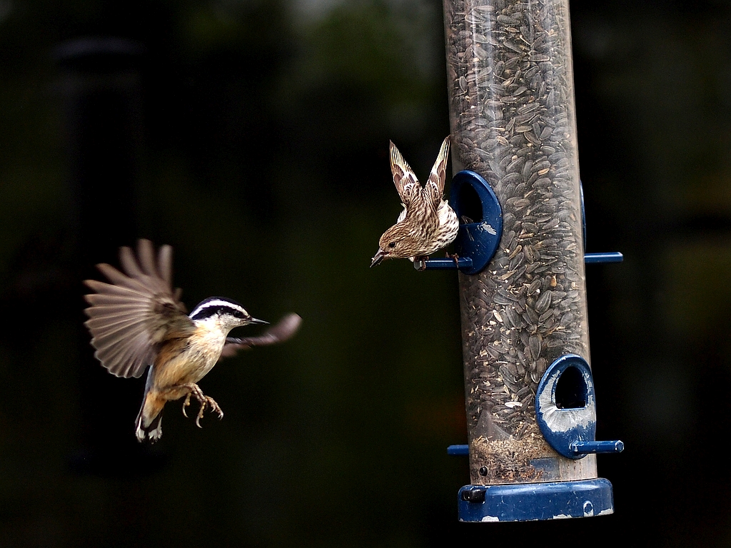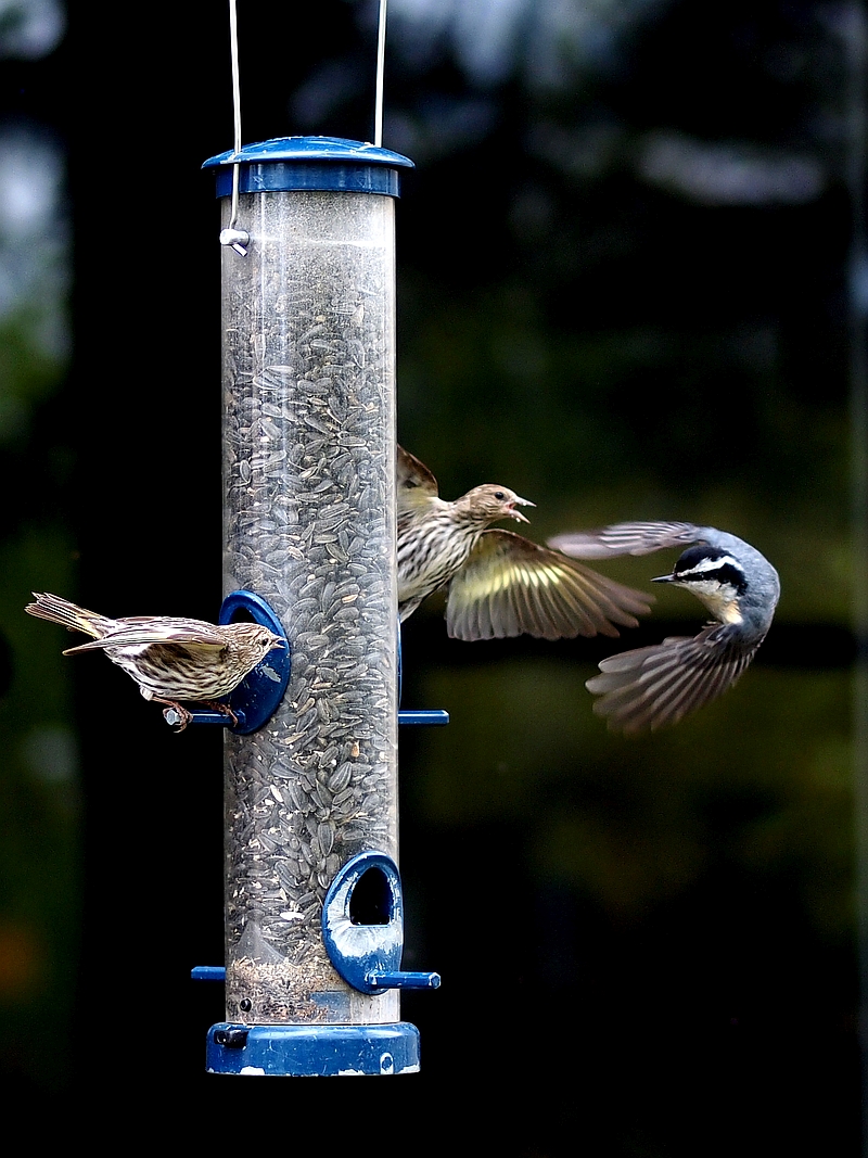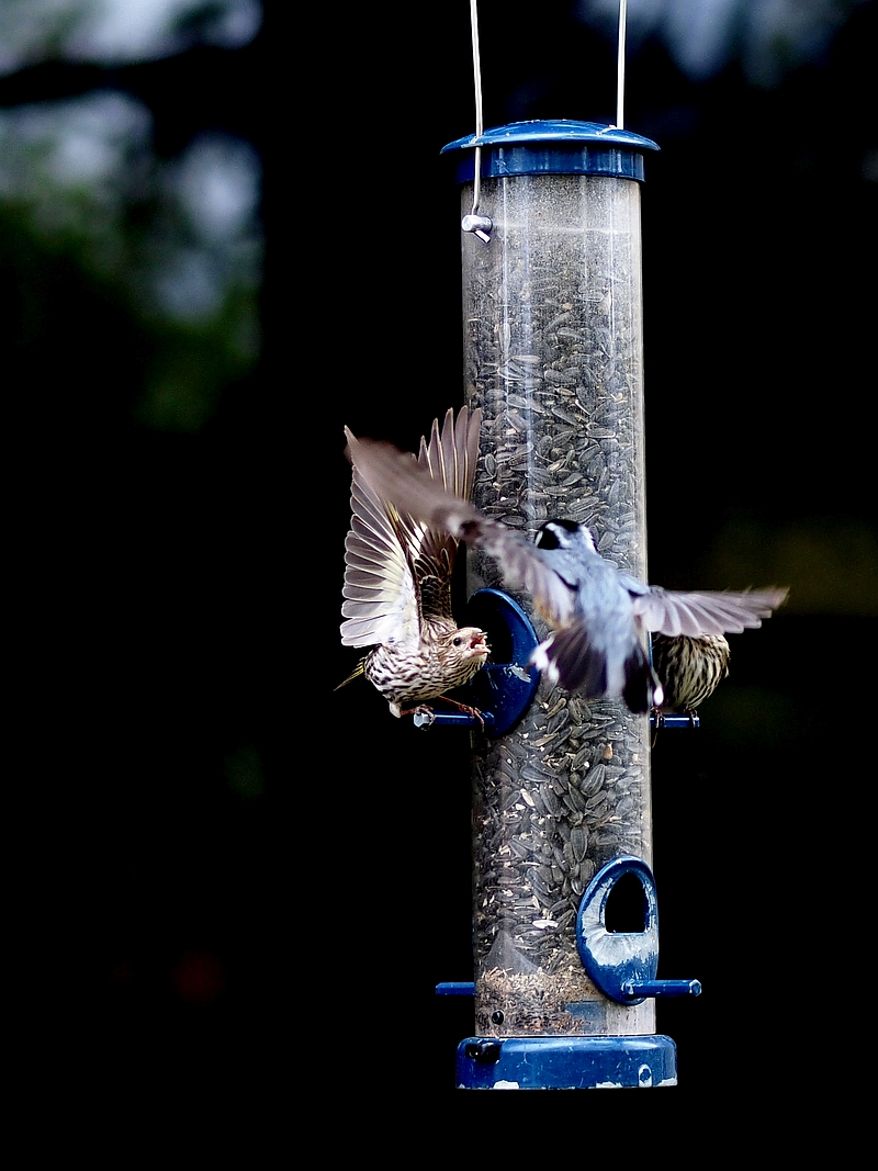 Po pewnym czasie niebytności - kilka walczących ptaków przy karmniku.Zdjęcia robione na Grandfather Mountain w Karolinie Północnej.