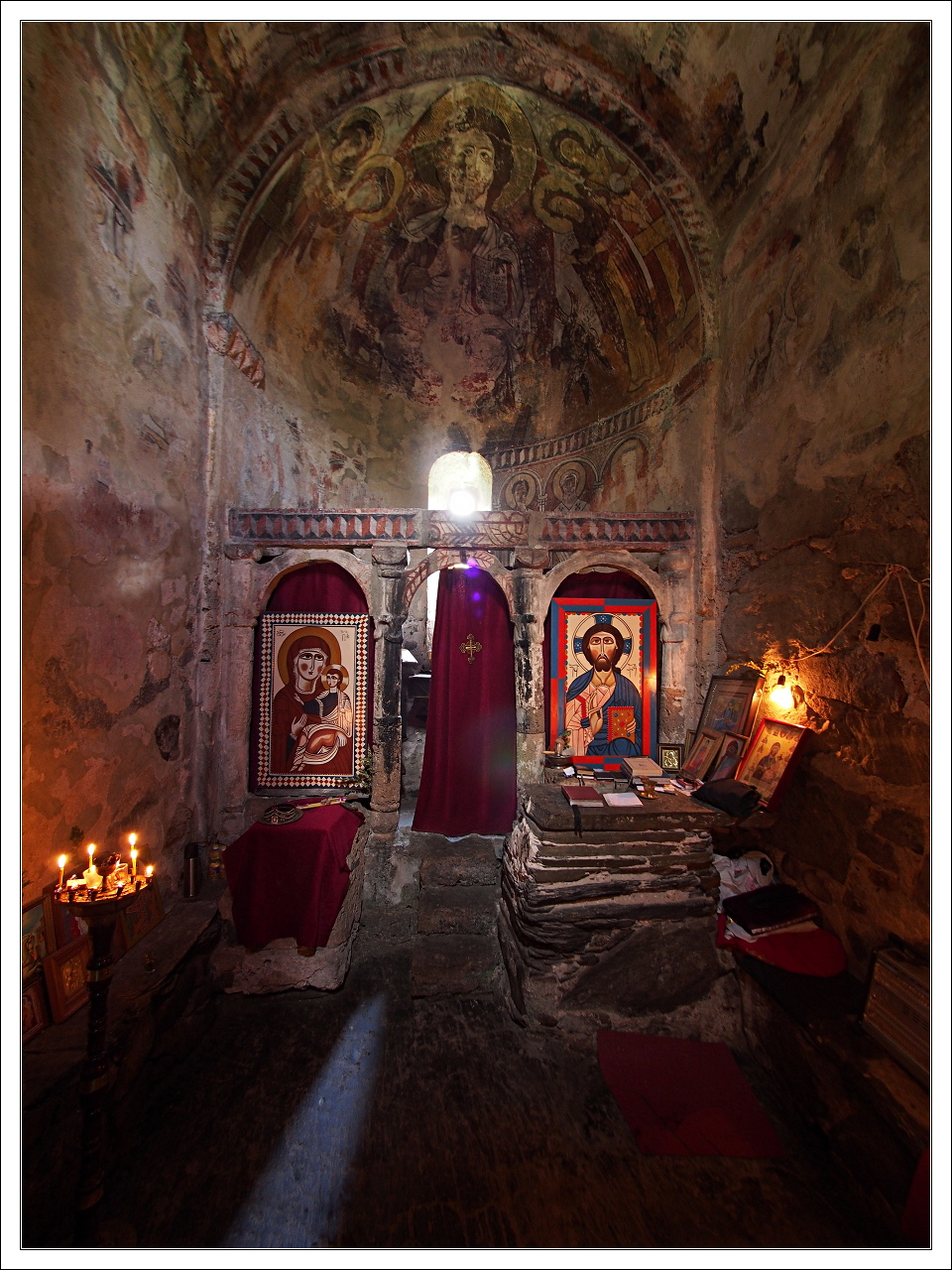 Ale też ukryta w niedostępnych górach Swanetia była dobrze chroniona od wrogów zewnętrznych. Nigdy nie została zdobyta. I teraz pomyślmy - gorąca krew i talent do bitki... klaustrofobiczne zamknięcie w małych enklawach... do tego brak wroga na którym można by wyładować agresję... efekt łatwy do przewidzenia - tłukli się między sobą aż furczało. Wendeta totalna. Żeby się nie powybijać całkiem, od średniowiecza zaczęto wznosić przy domach kamienne, warowne wieże. Na dole bydło, potem pasza, potem strawa, jeszcze wyżej mieszkanie i okienka z których do sąsiada można mierzyć z kuszy czy z łuku albo polać go na powitanie gorącą smołą...