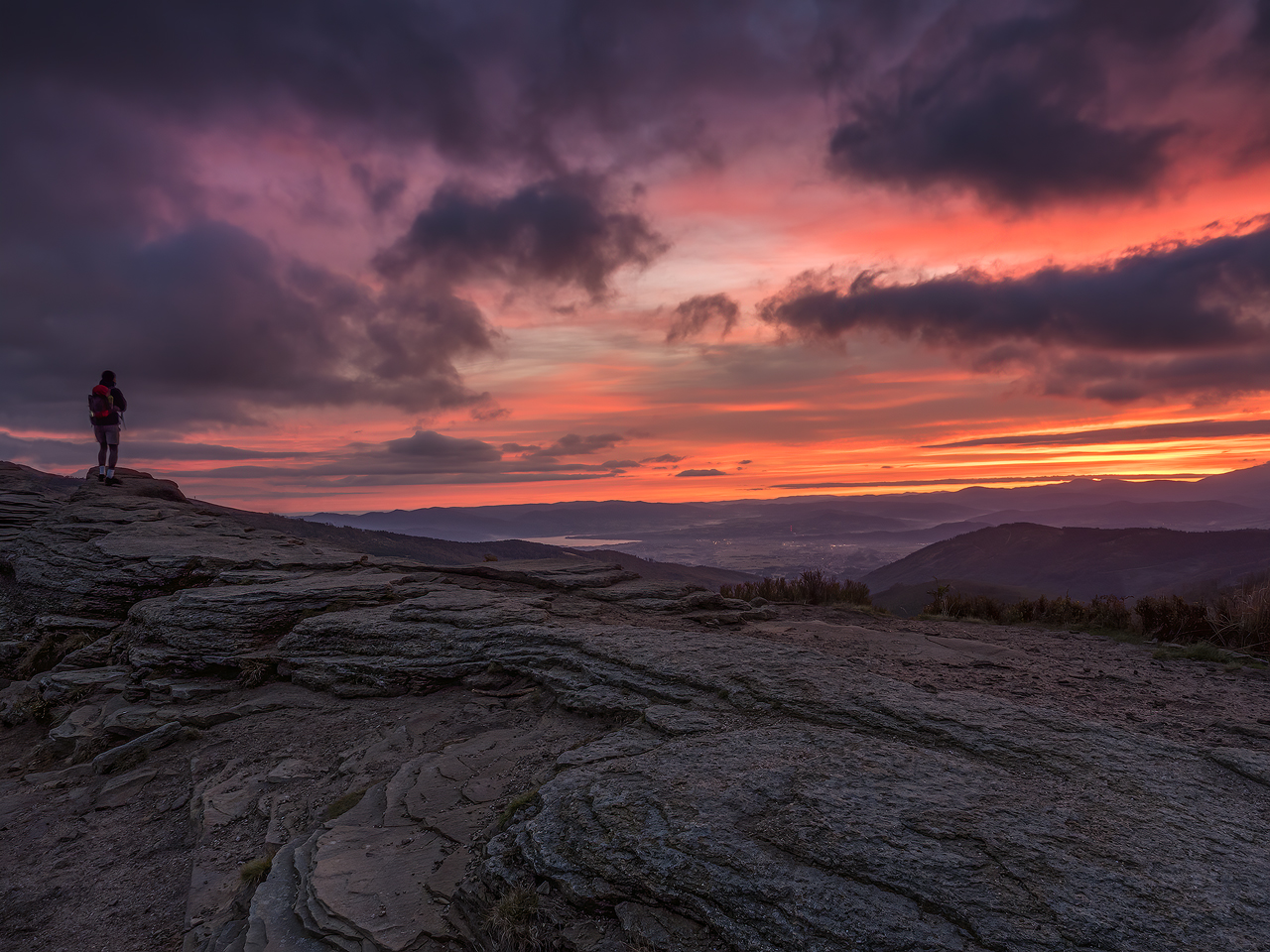 Szczególnie mi się podoba nr 359 ze względu na 2 plany - zakosy skalnych warstw leciutko oświetlonych zachodzącym słońcem na pierwszym i czerwone niebo na drugim oraz postać po lewej dyskretnie wpasowana w kadr.