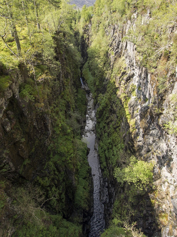 Corrieshalloch to wąwóz , który został wycięty już 2.6 milliona lat temu przez Lodowiec. Płynąca nim rzeka Droma na odcinku 1,25km spada w dół 100 metrów kilkoma kaskadami i wodospadami. Największy z nich ma 45 metrów i ten możemy podziwiać w pełnej okazałości. Wartotam pospacerować. Widok z mostu robi wrażenie. Po przejściu kilkuset metrów mamy platformę z widokiem na wodospad i most po którym przechodziliśmy nad wąwozem. Teren jest dobrze przygotowany do spacerowania i podziwiania widoków.