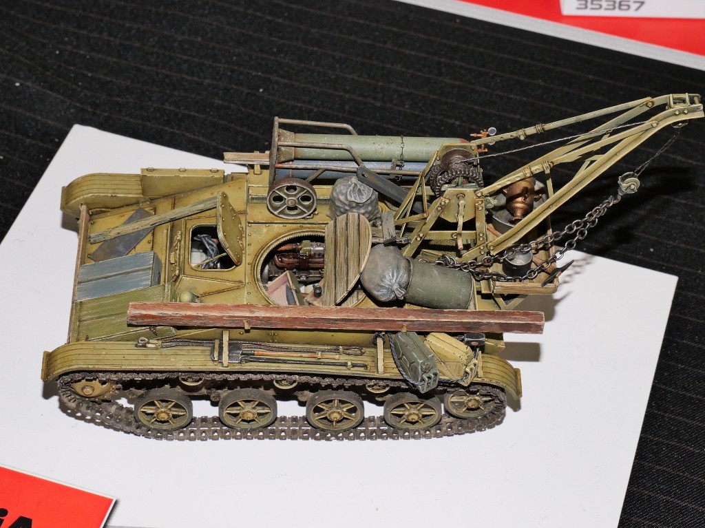 Jak widać dość oszczędnościowo przerobiono lekki czołg na wóz zabezpieczenia technicznego - otwór po wieży zamknięto pokrywą z drewnianych desek. Chyba zbyt praktyczne to nie było - zwłaszcza podczas opadów.