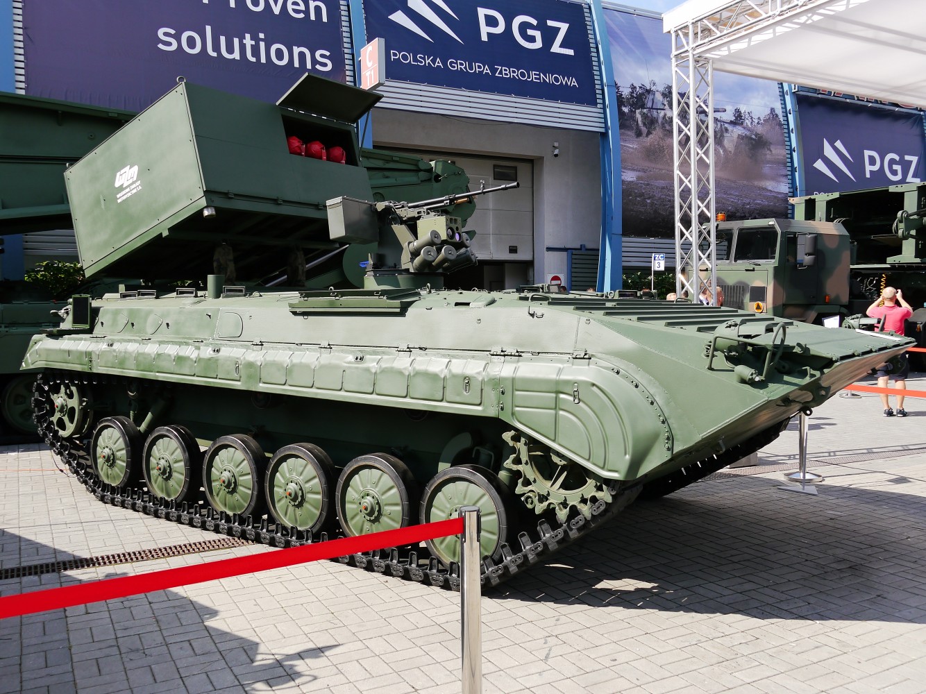 Wyrzutnia systemu plot. Poprad, uzbrojona w rakiety Grom, bazująca na pojeździe AMZ Żubr-P.